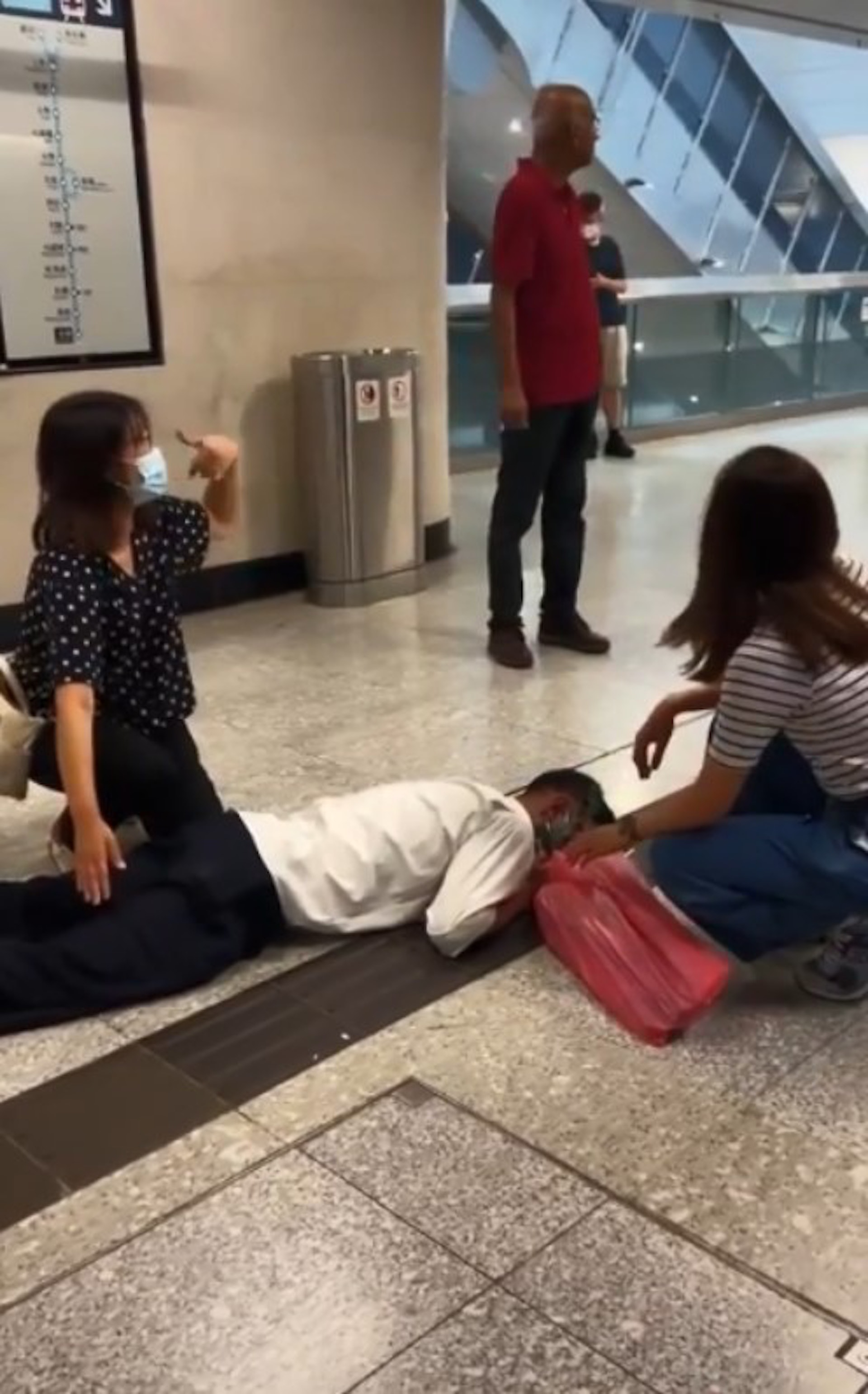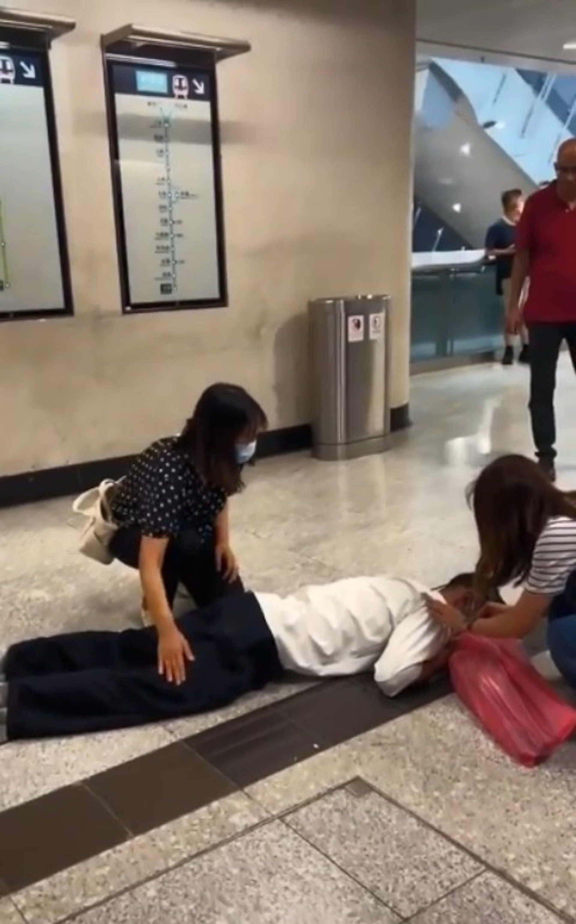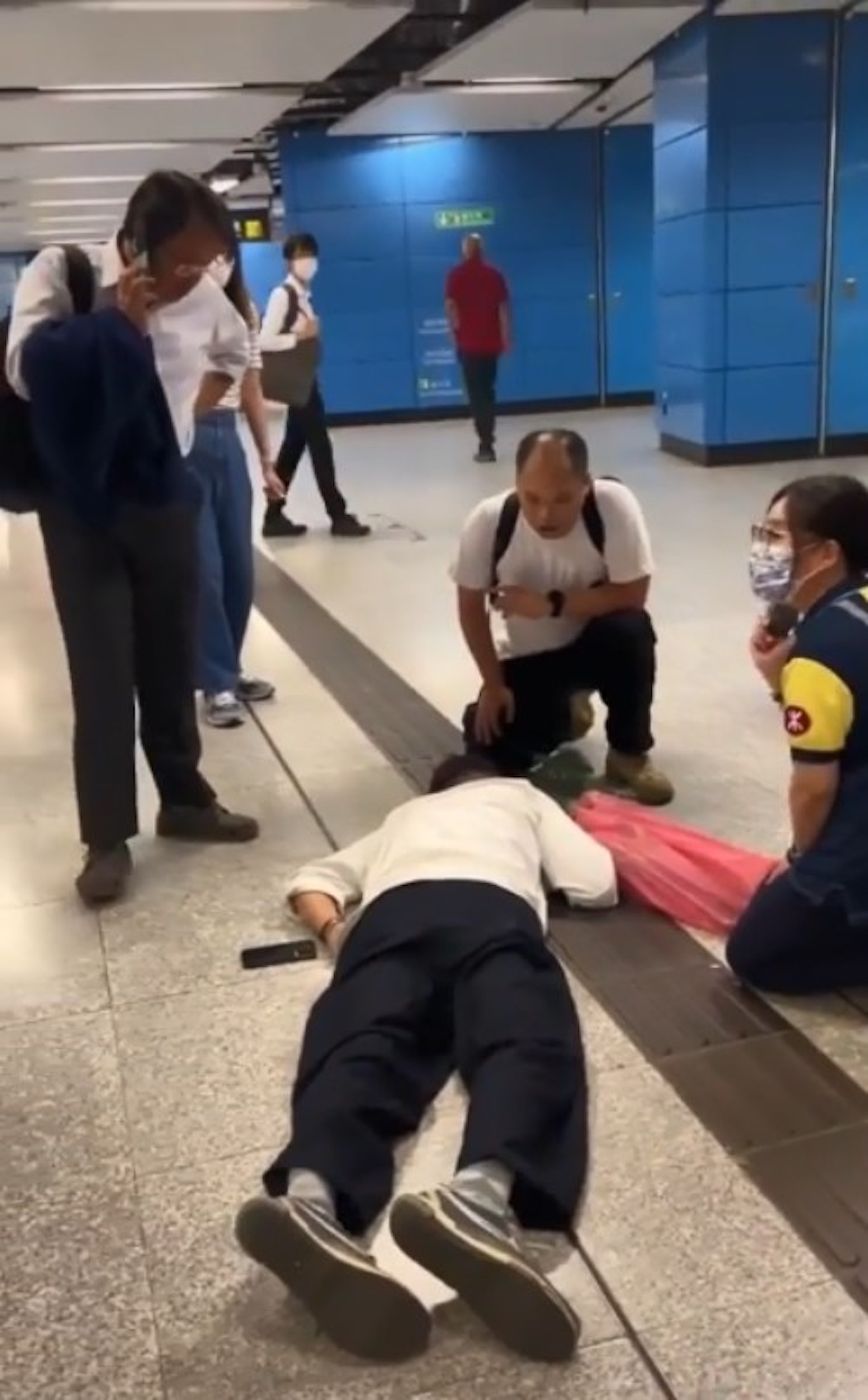 網上流傳的短片拍攝到一名中年男子在金鐘站月台暈倒,俯伏地上,臉部有血,有熱心途人通知職員及上前協助急救,男子最終由救護車送院救治。片段被上載到內地影片分享平台「抖音」,引來不少網民熱論,稱讚港人熱心,大讚「人間有情」。