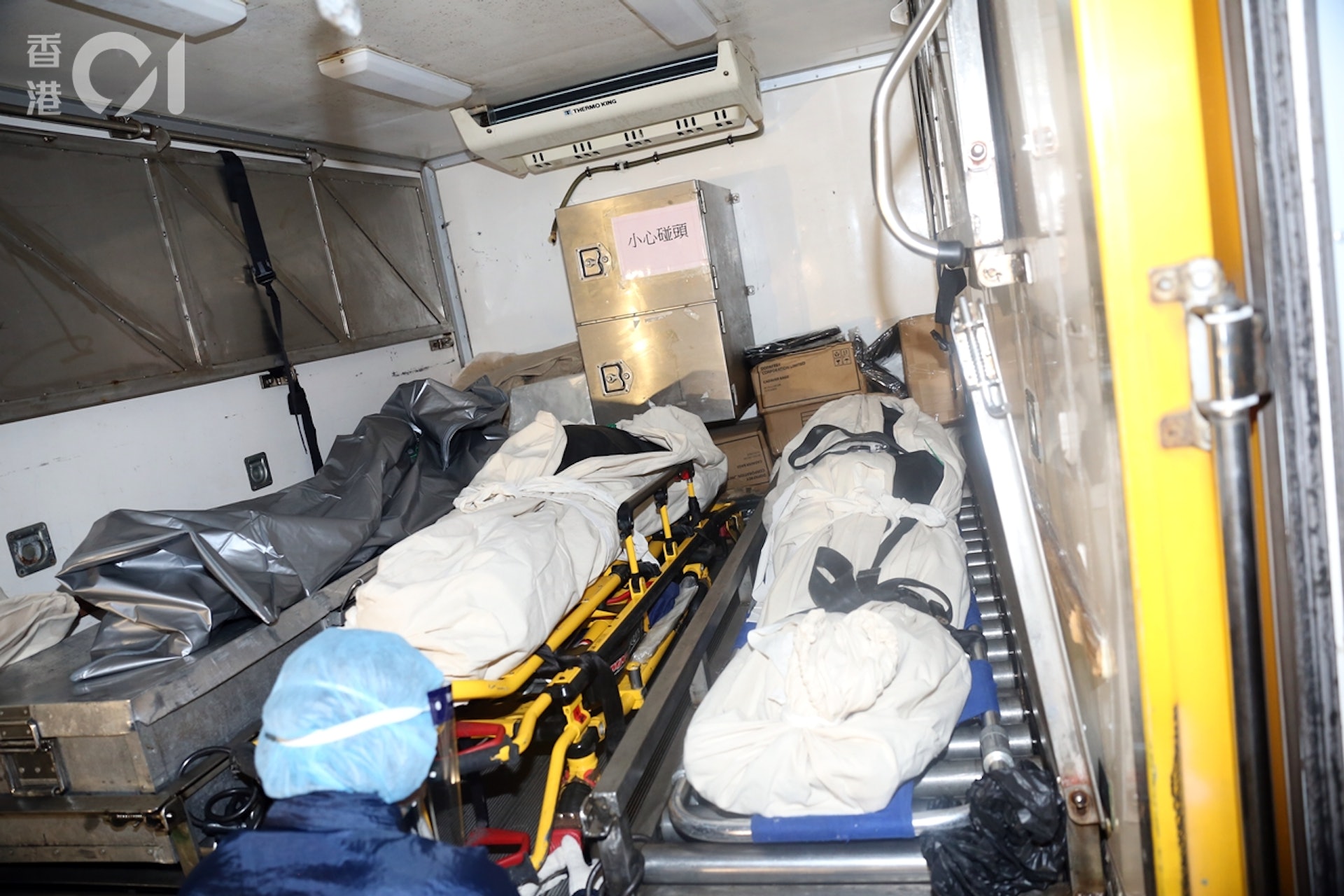 $ k! y" N0 }, _) [os.tvboxnow.com兩名死者遺體由仵工舁送殮房。(陳永武攝)公仔箱論壇& T: T5 v7 c' k1 w