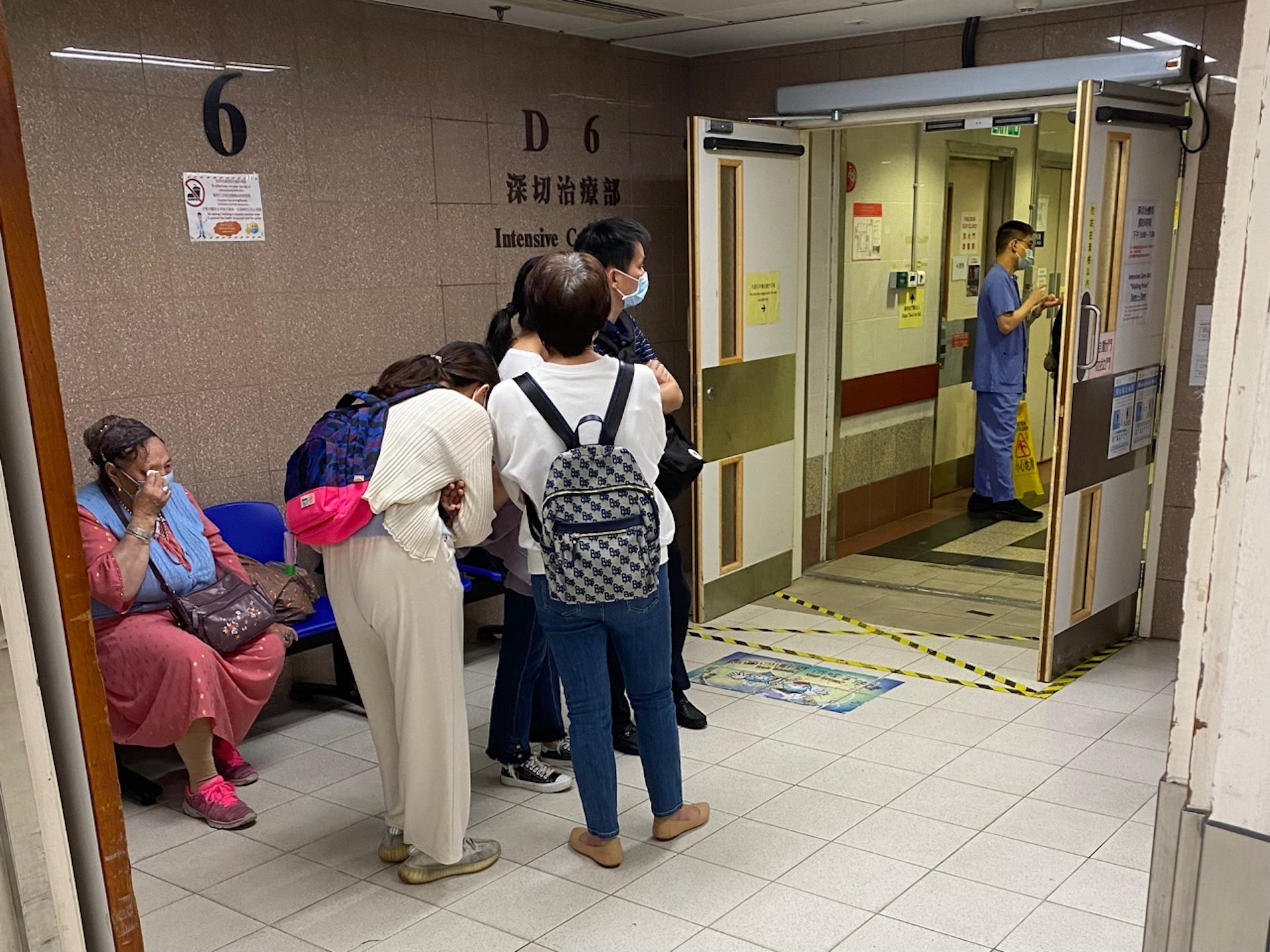 兩名女親友陪同送院,一臉憂心。(翁鈺輝攝)5 _' W, F% w$ W1 |& Q