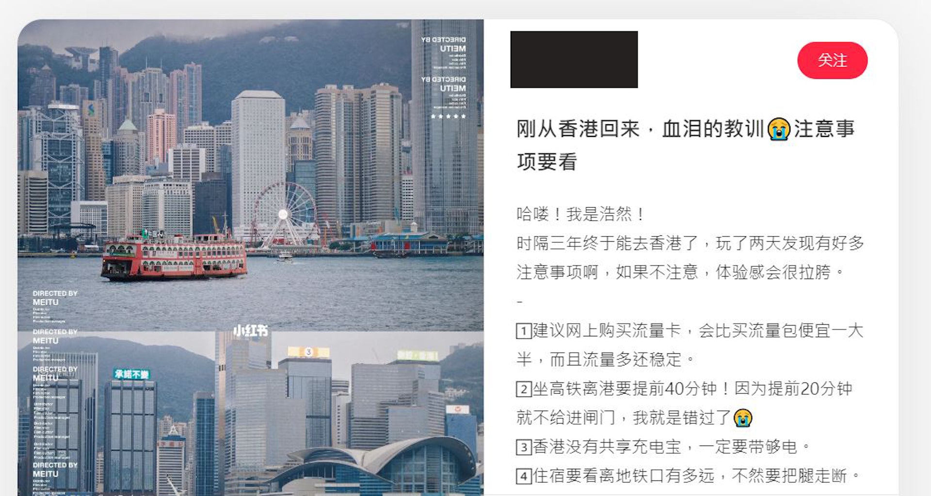 . E1 h9 i3 g1 a! h; }. x$ _. Oos.tvboxnow.com該內地男於小紅書以「剛從香港回來,血淚的教訓,注意事項要看」為題發文,指時隔3年終於再來香港遊玩2天,其間經歷辛酸,「發現有好多注意事項啊」。