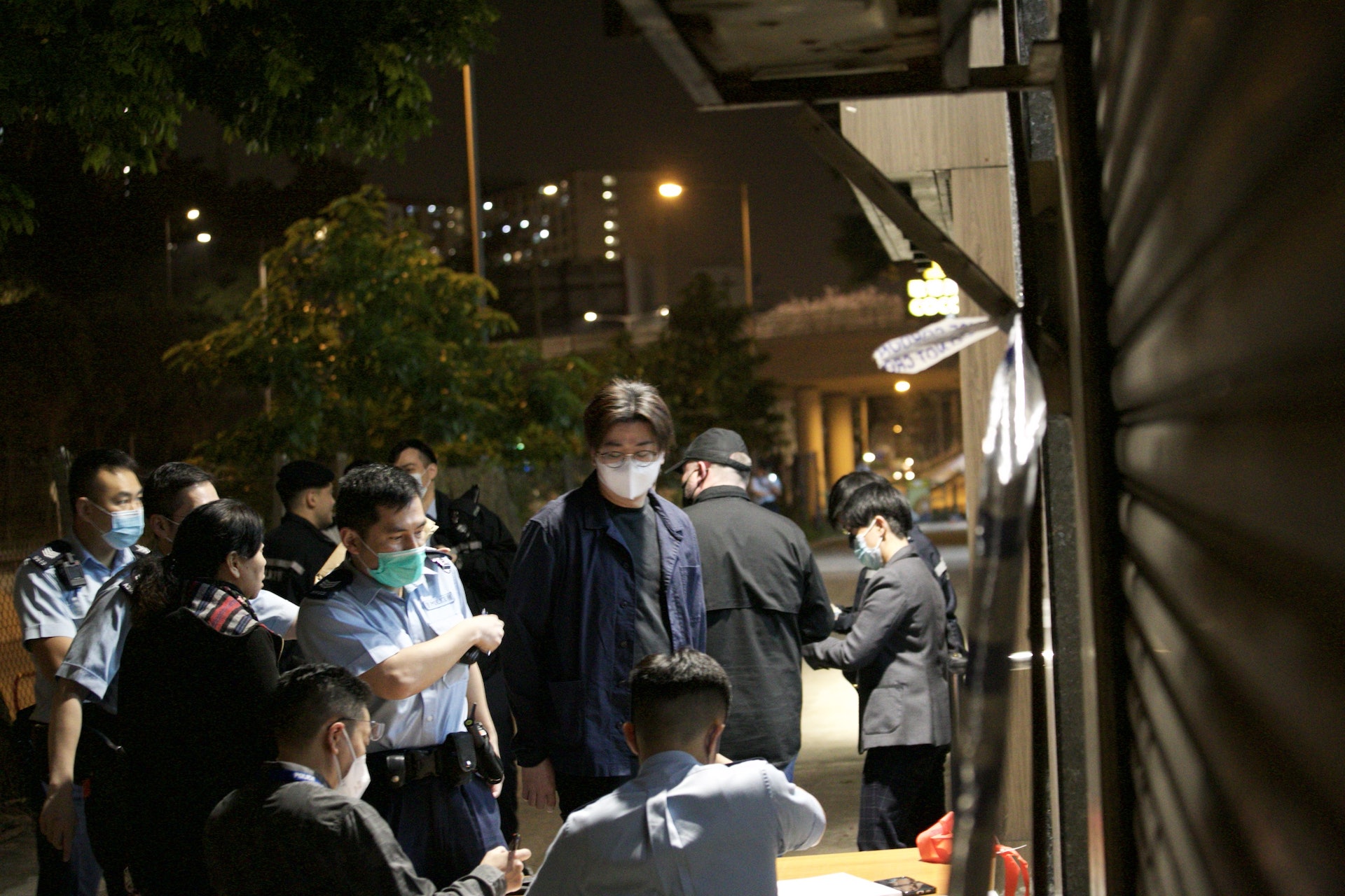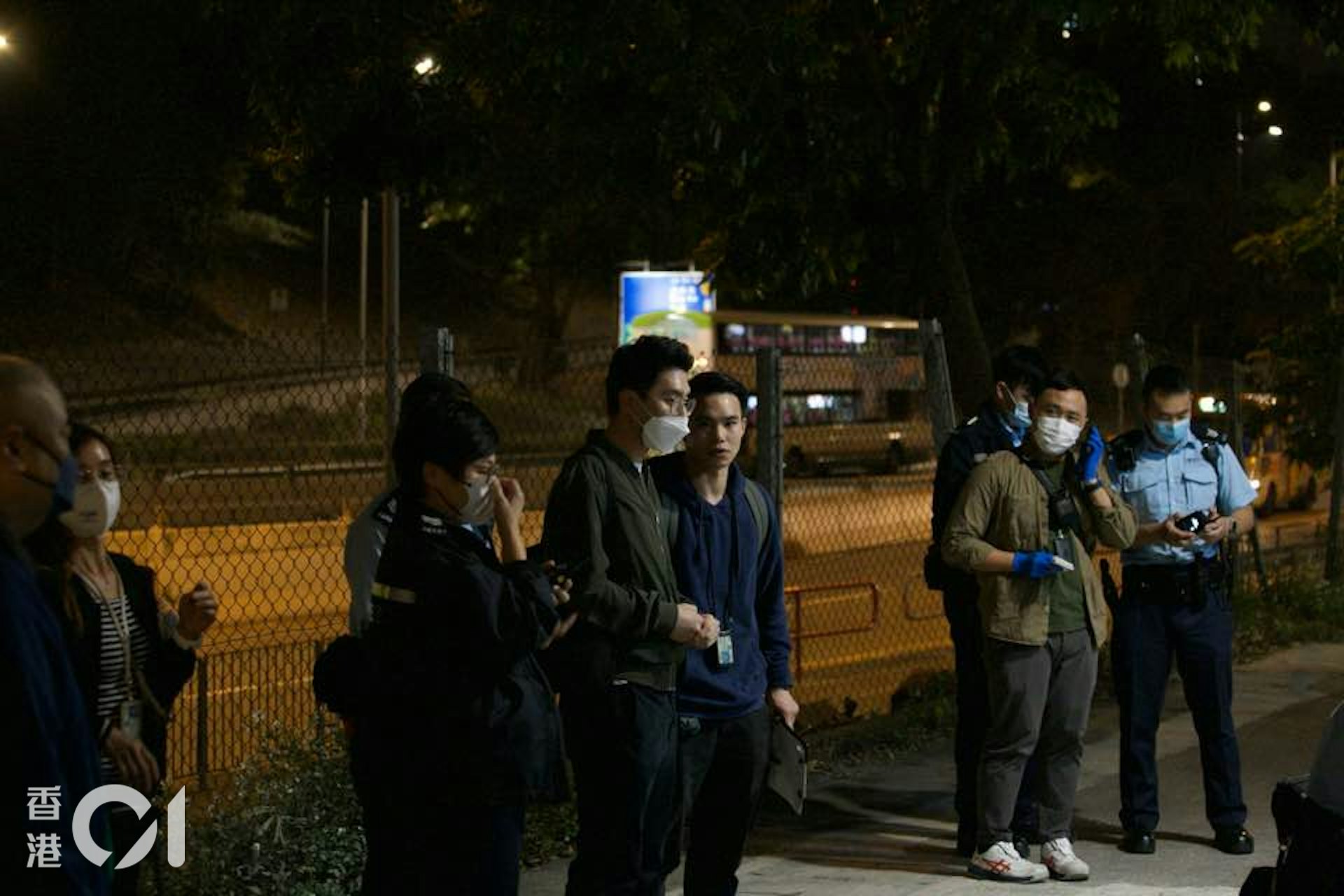案發當晚,一名相信是死者家屬的男子在場協助警員調查。(左朗星攝)( r+ L; k0 M* L0 K: w