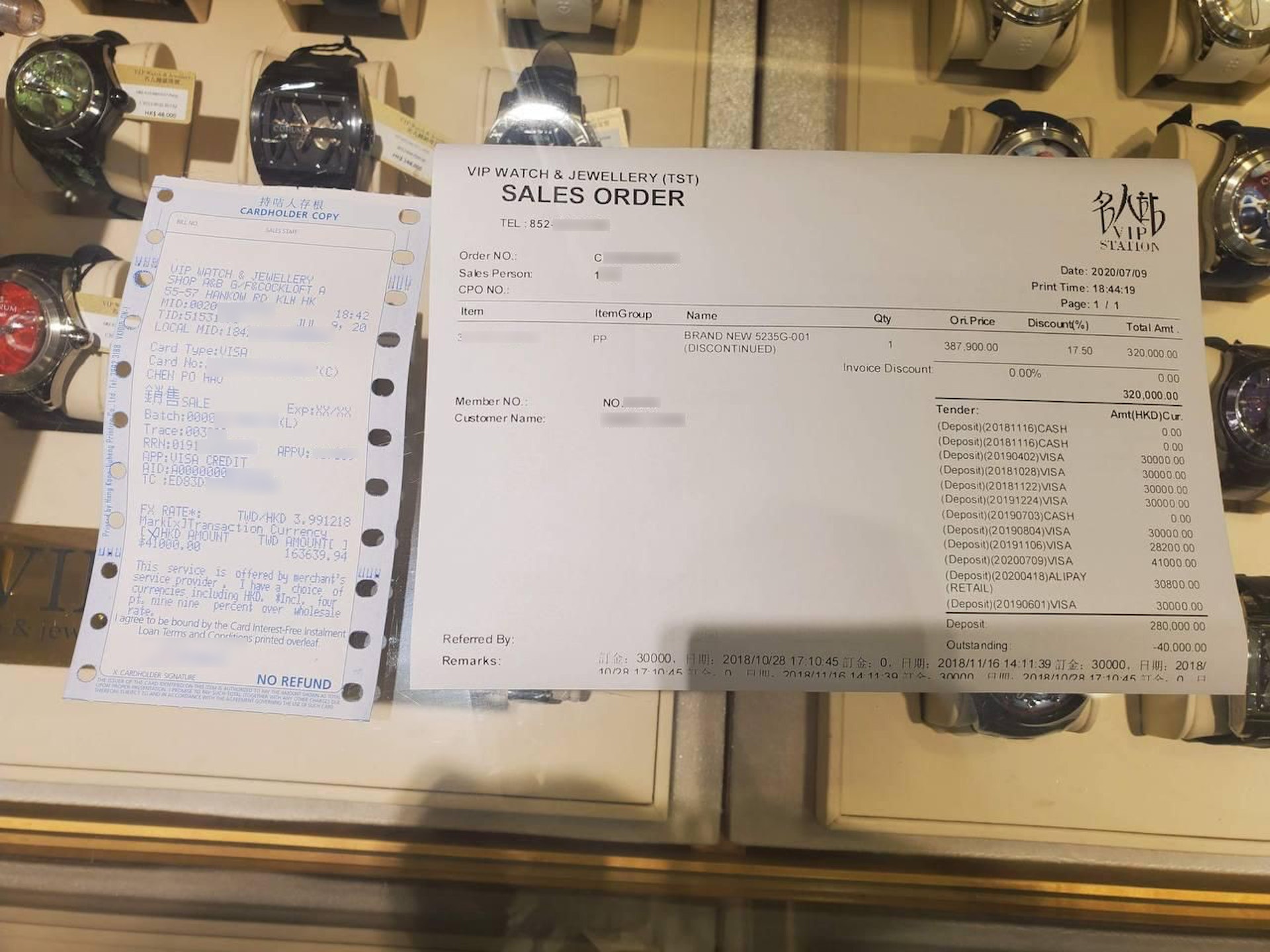 來自台灣的陳先生先後過數31萬元購買2隻手錶,店方指因沒有找尾數而全數殺訂。(陳生生提供圖片)