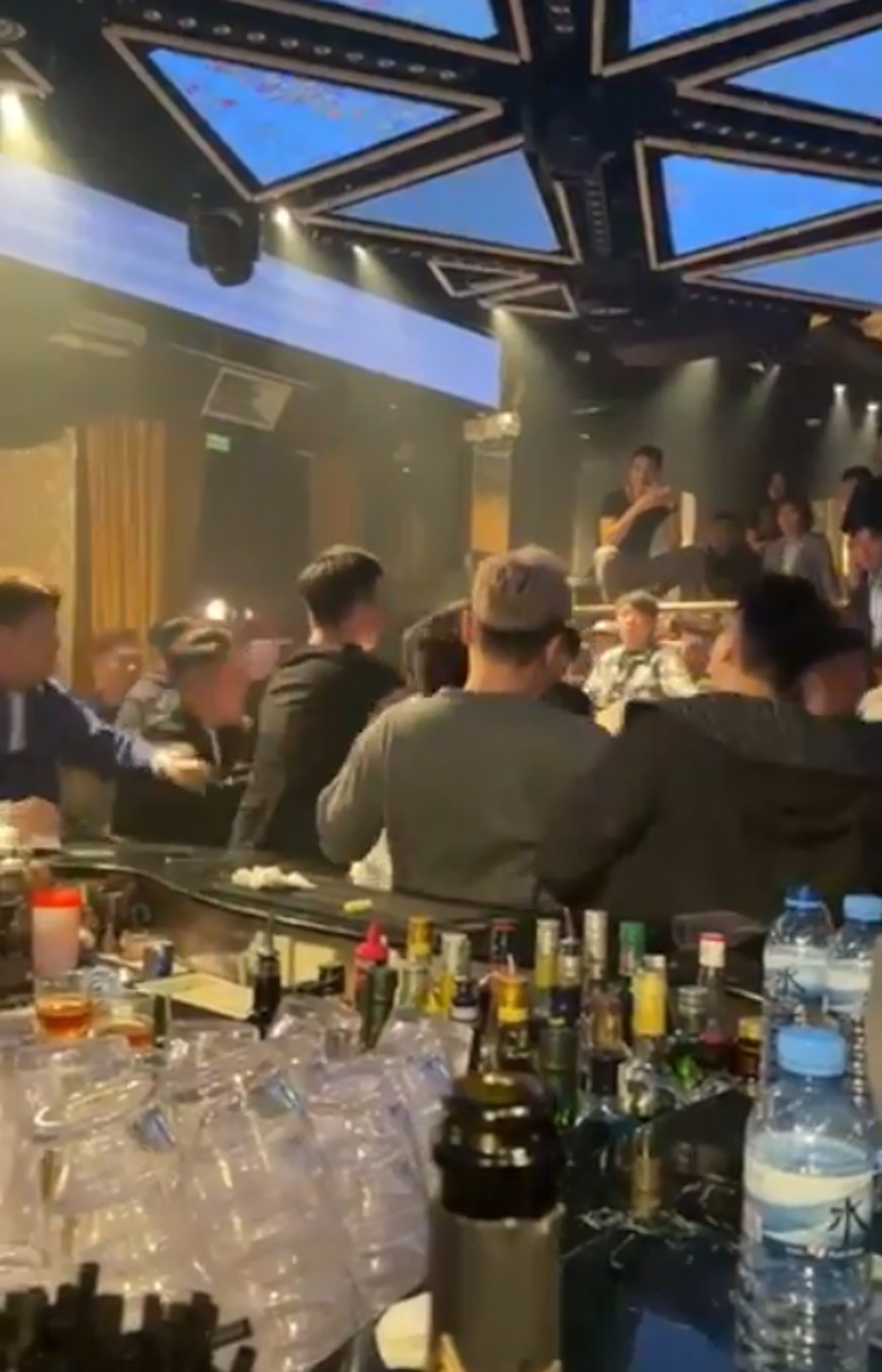 : g8 E. U5 Q6 w7 L4 t, ?從現場拍攝影片可見,多名酒客互相指罵。(讀者提供)