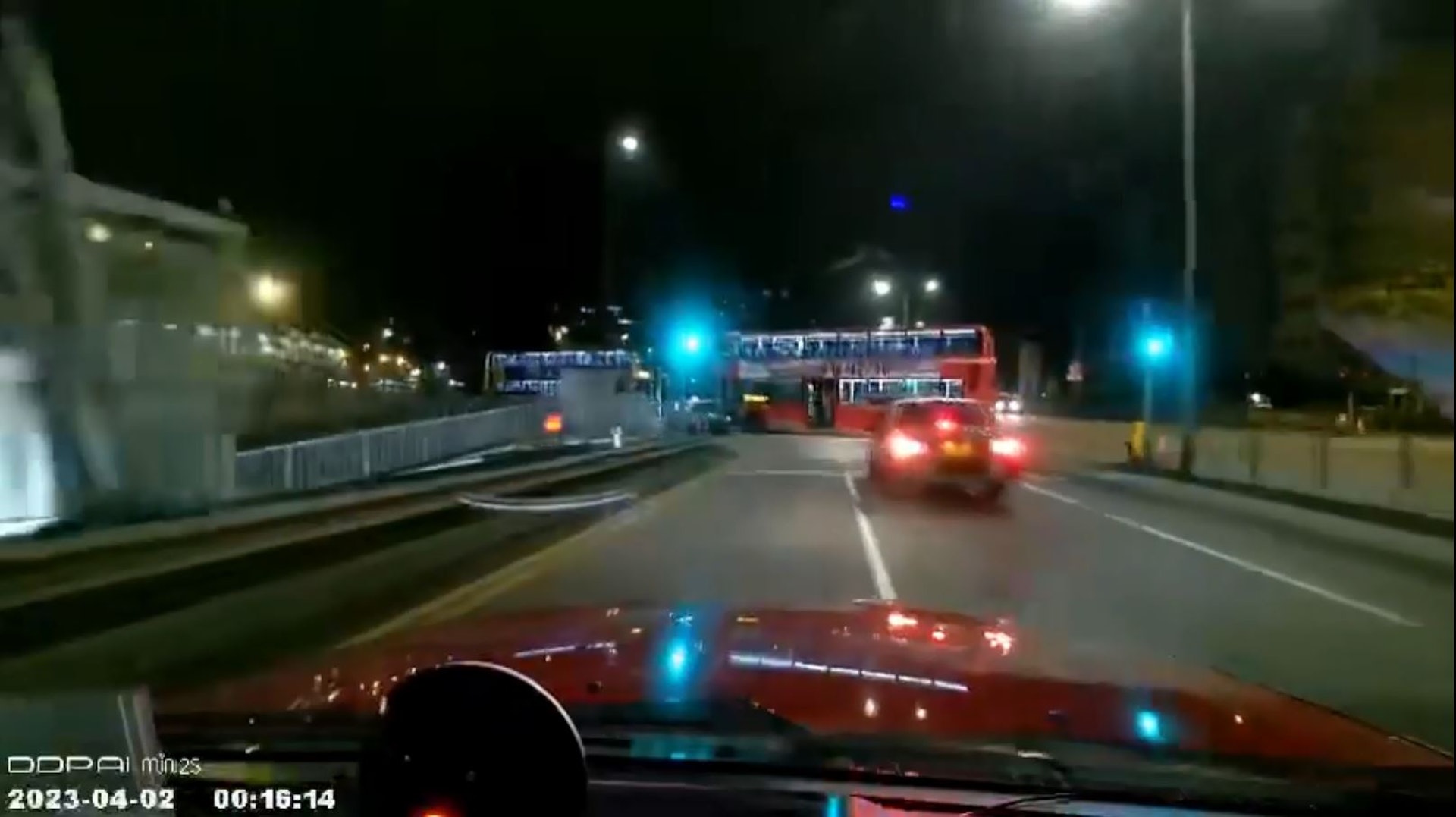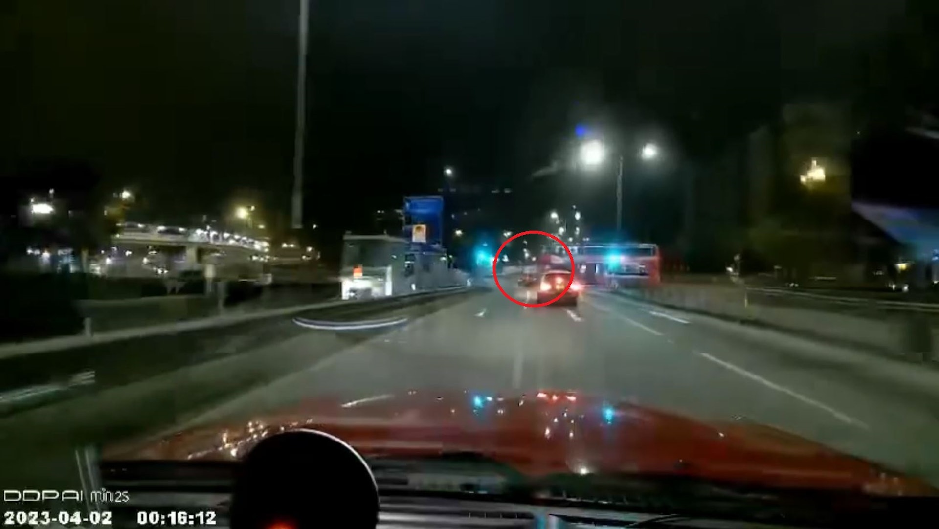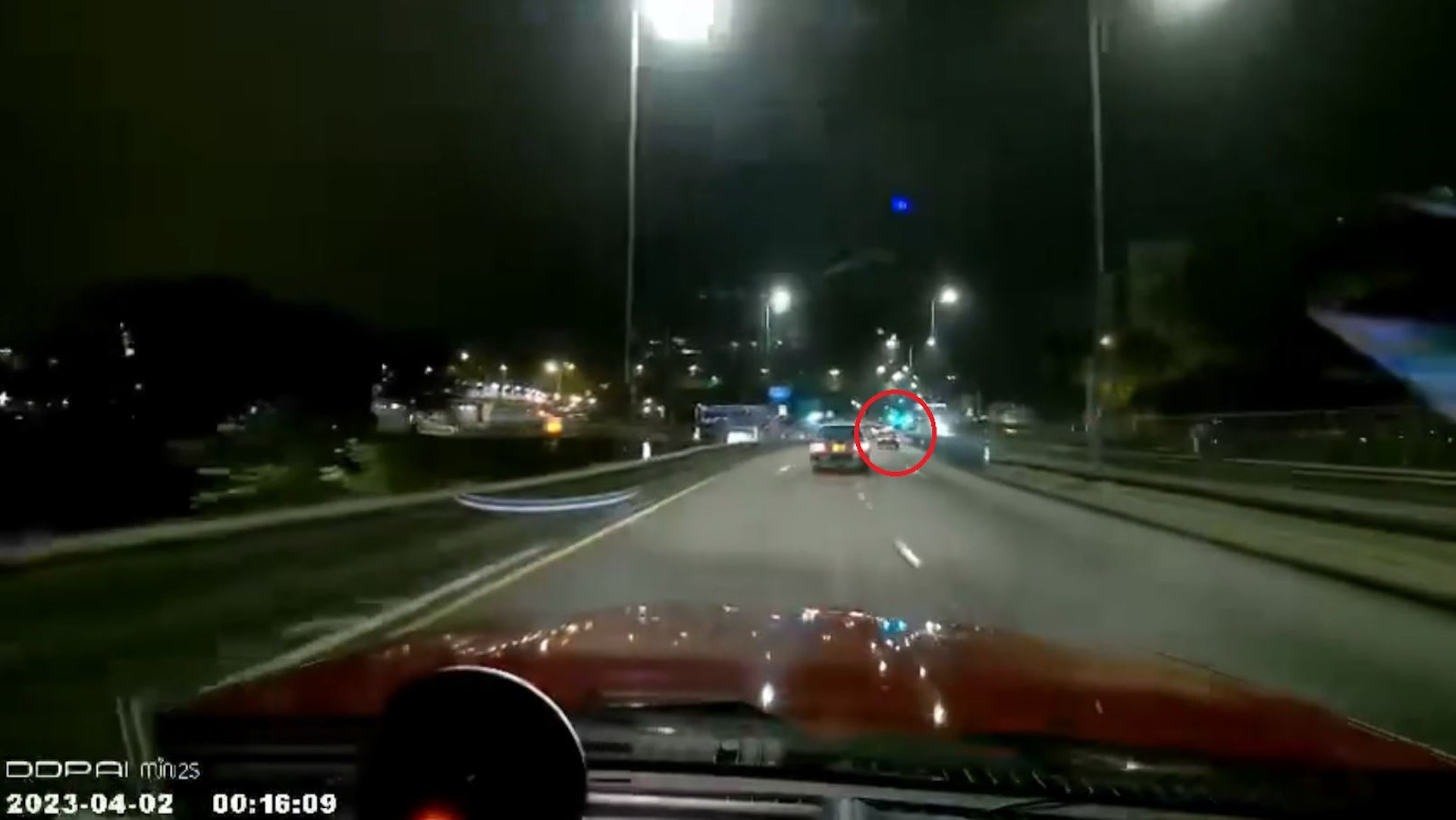 2 s7 x8 F+ `/ S# l5 J當時新界的士沿南運路右線而行。(網上影片截圖)8 W' c2 _5 m! [- A! s