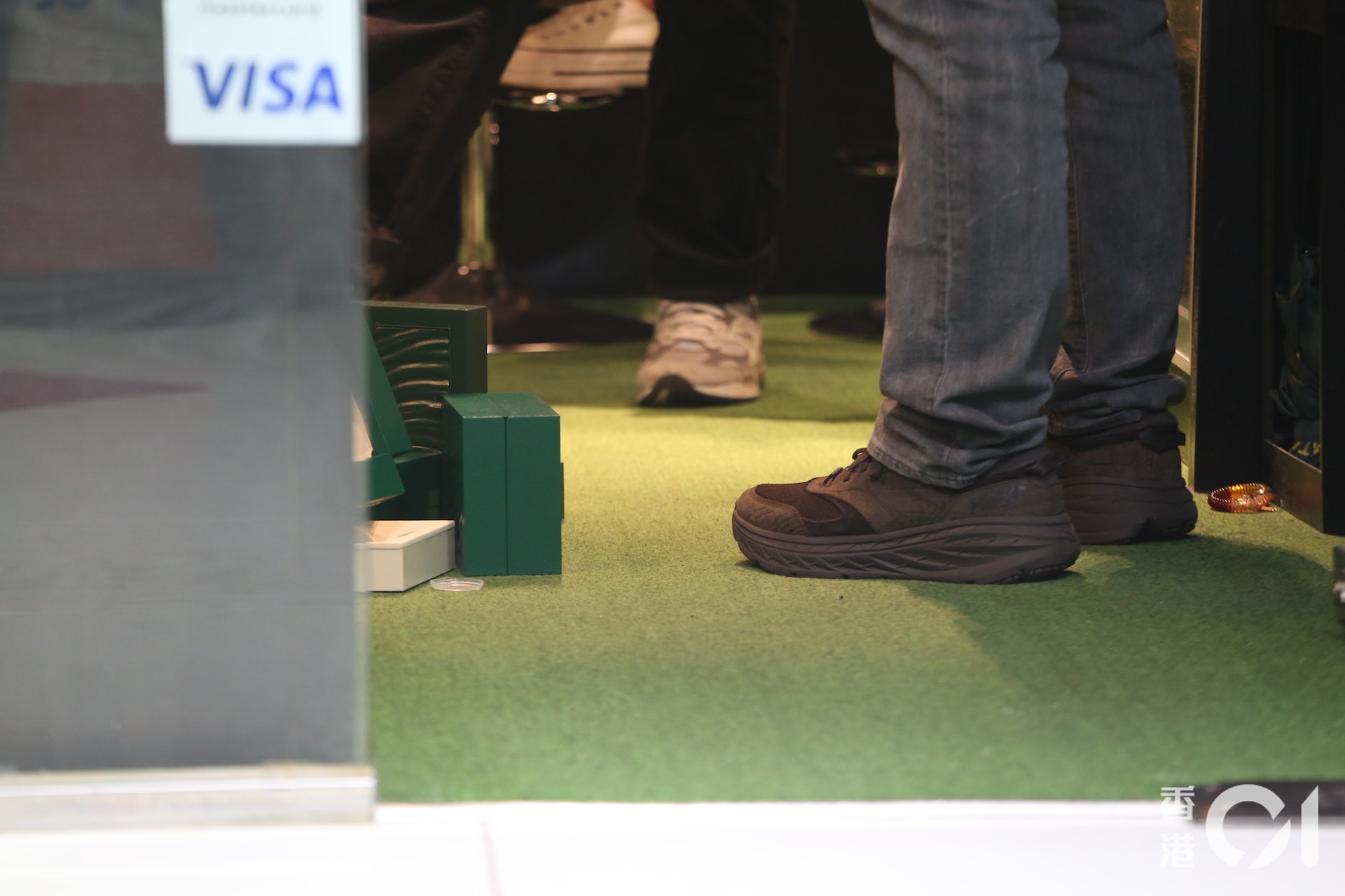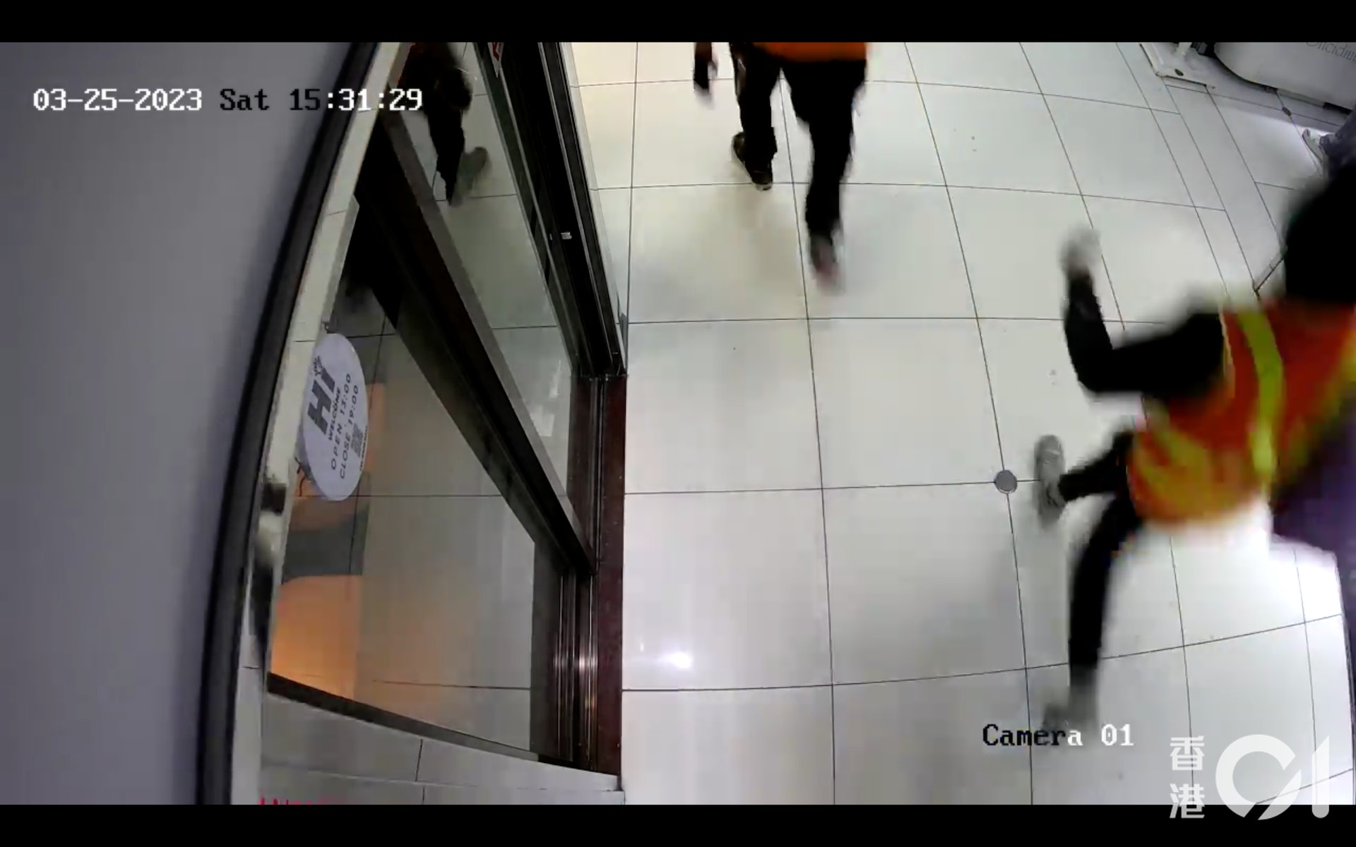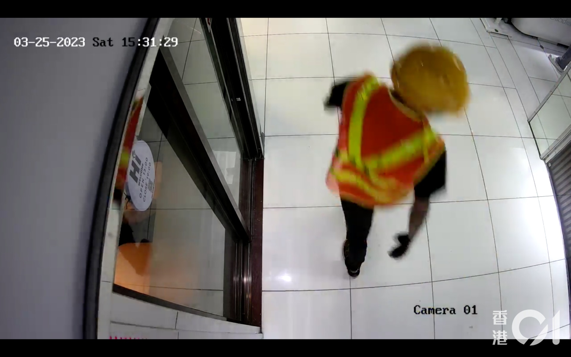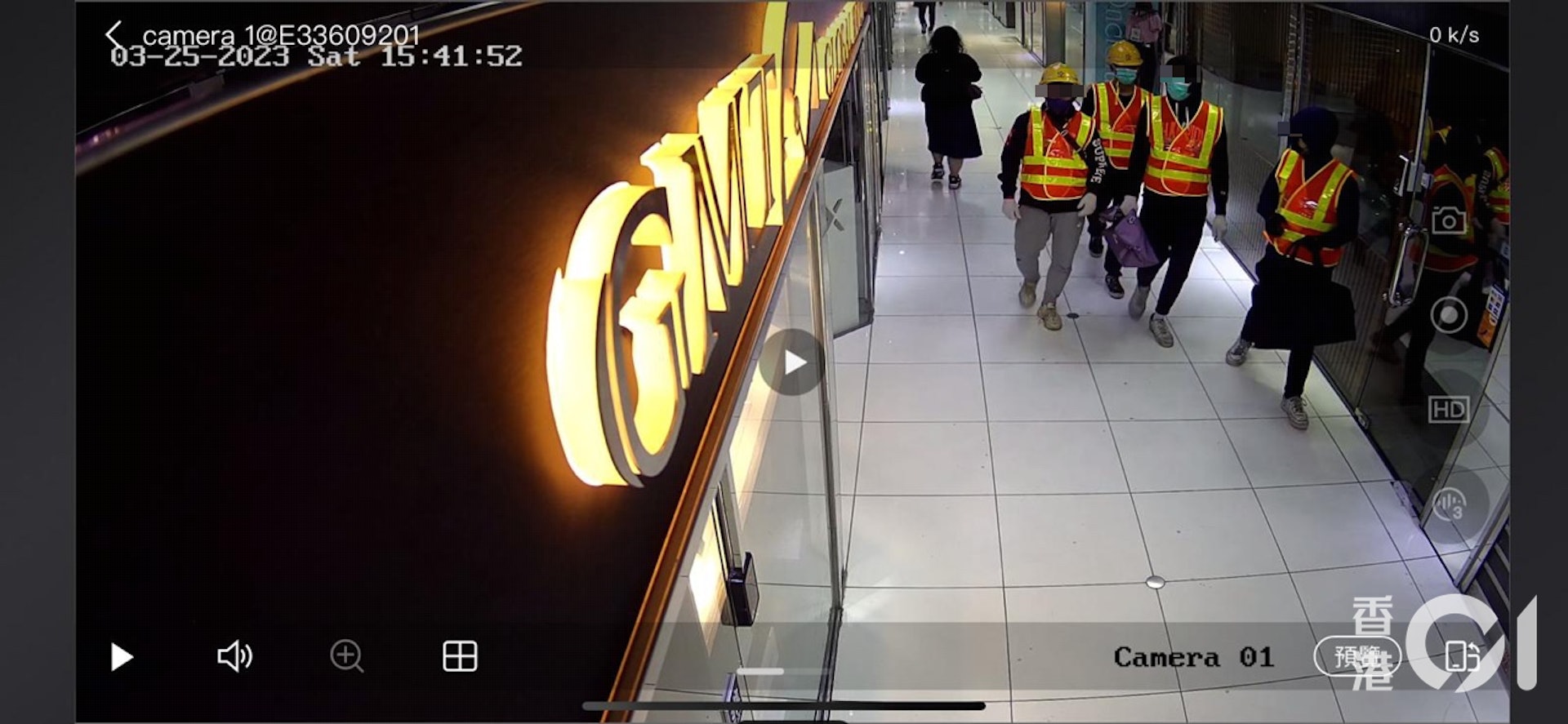 片段顯示時間為下午3時41分,4名南亞裔賊人均穿着橙色黃間,背後印有「安全第一」的地盤反光衣。賊人面戴口罩,其中兩賊頭戴黃色安全帽,另外兩人身穿深色連帽衛衣,笠著衣帽。相隔約4分鐘,賊人相信已搶劫得逞,背向鏡頭離開,手執兩個分別紫色和黑色的環保袋,其中一賊則揹米白色「GUCCI」斜揹袋。7 F+ t/ G4 n& a9 M' @) \3 ^! S