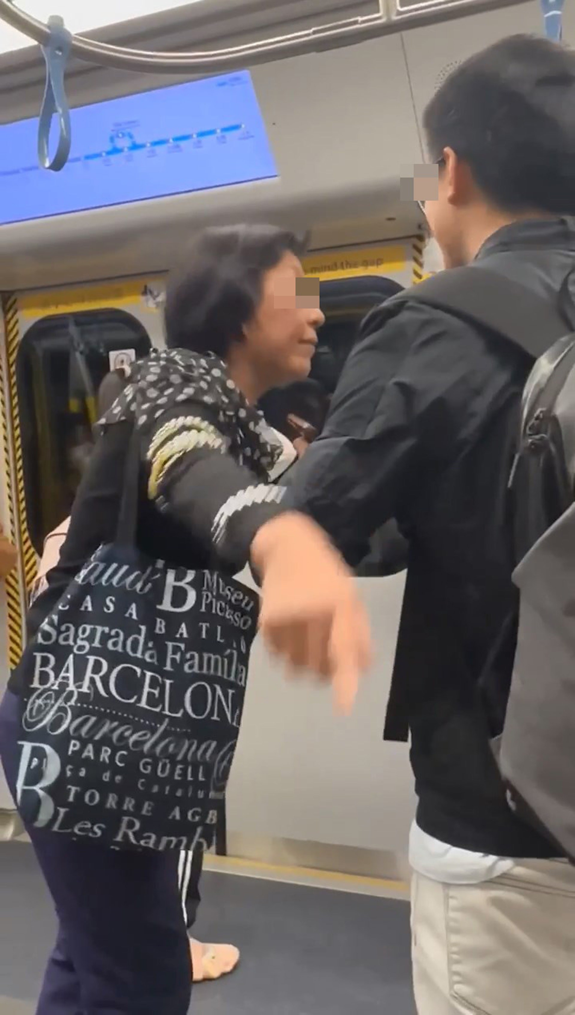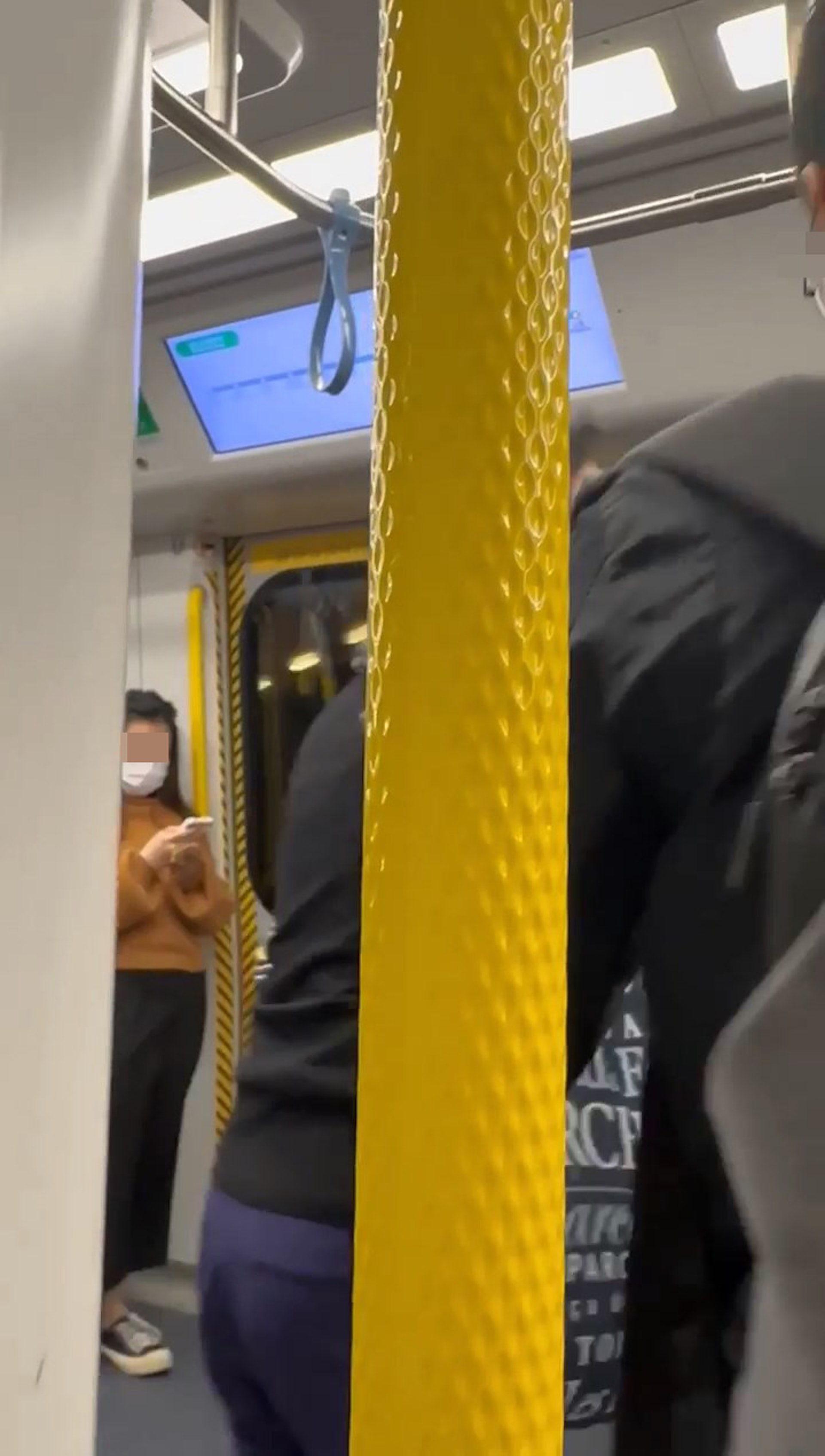 2 q O# d3 A9 X/ s大媽之後邊說邊走近乘客挑釁,「嚟啊嚟啊!過嚟啊!過嚟啊!」。(Facebook群組「沙田之友」)