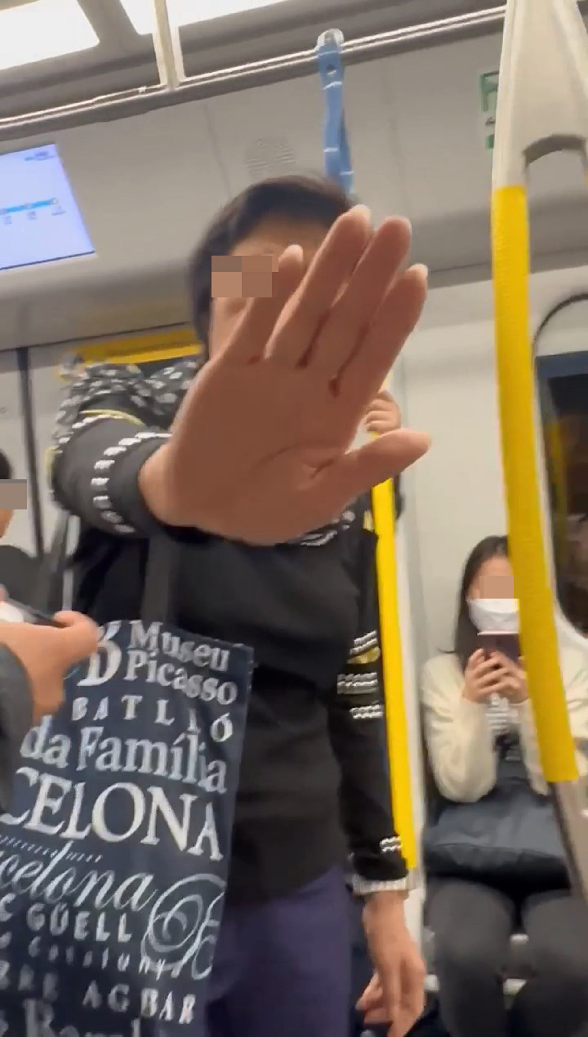 大媽繼續辱罵,並用手遮擋鏡頭。(Facebook群組「沙田之友」)