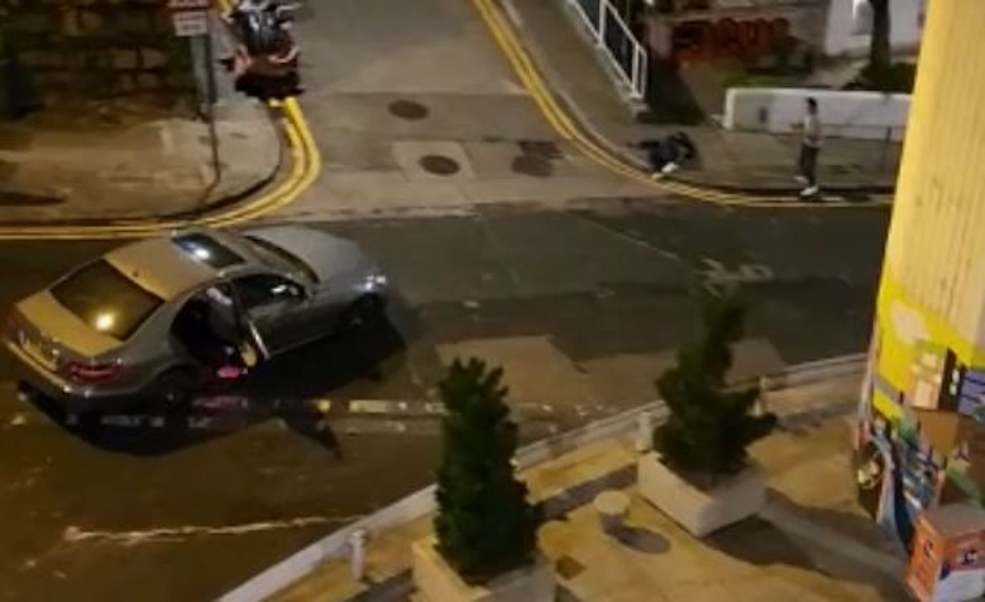 從事發片段可見,行兇3人均穿著黑色衫褲及戴黑衣鴨舌帽,其中兩人向事主施襲,另一人持刀阻截事主的朋友。事主倒在馬路中捱斬,其間翻滾閃避上行人路,但仍然中刀。兇徒得手後跳上灰色私家車逃去。傷者朋友隨即打電話,相信是報警。# o# [: V& H; e5 H