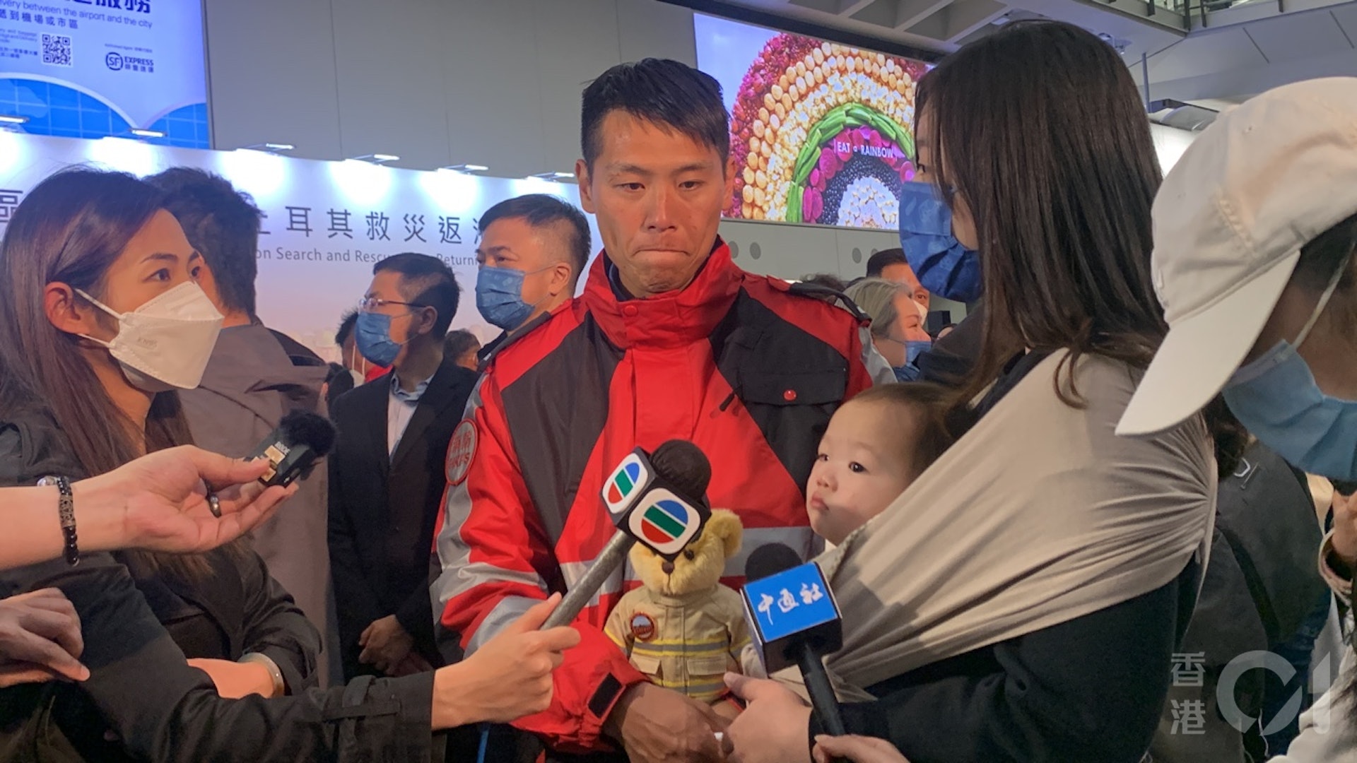 ! H! X3 `) b) S0 N7 Z3 pos.tvboxnow.com土耳其上周一(6日)發生7.8級強烈地震,港府派出的59人救援隊周五(17日)深夜返抵香港。救援隊隊員之一的消防員文發,看到8天無見的太太和10個月大的兒子來接機,忍不着掉男兒淚,連忙親吻兒子。他表示,在當地睡眠「瞓得唔好」,回家後第一件事想沖涼和睡個好覺。tvb now,tvbnow,bttvb9 w& F; D* Z7 A* Z$ V0 ^- N