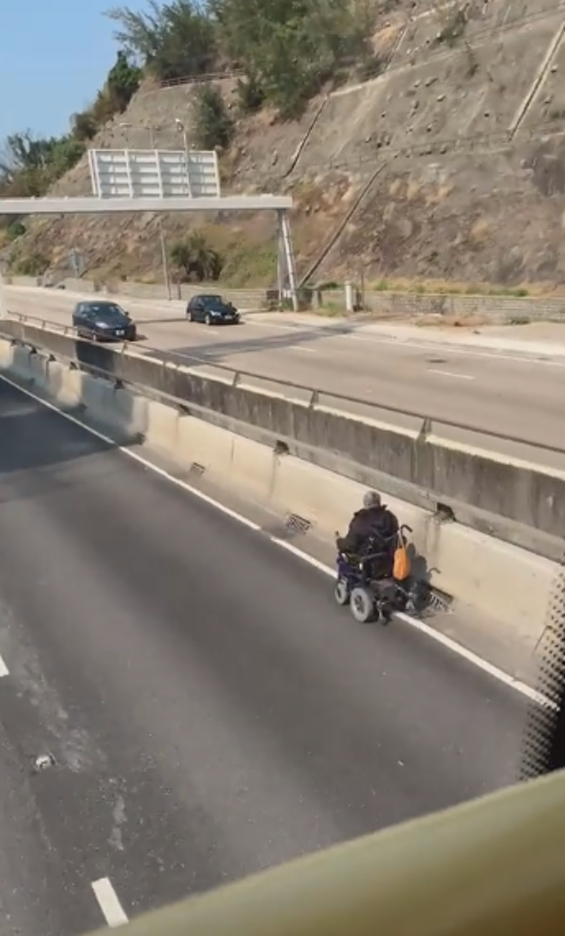 0 N m8 Z; x. O9 [2 @- D/ i2021年2月,有輪椅伯伯疑迷路,誤闖呈祥道快線,網民直呼驚險。(網民Eric Chan上傳至香港突發事故報料區)