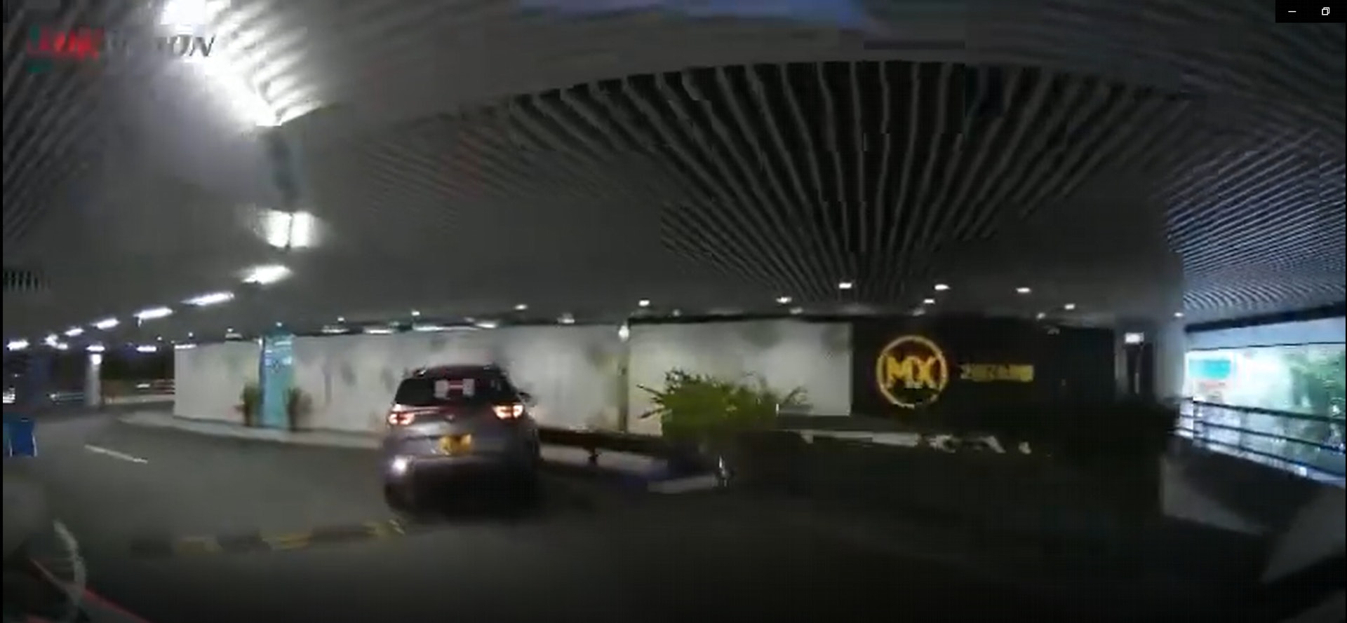 上環信德中心停車場今早(17日)發生驚險一幕。(網上車cam片段截圖)