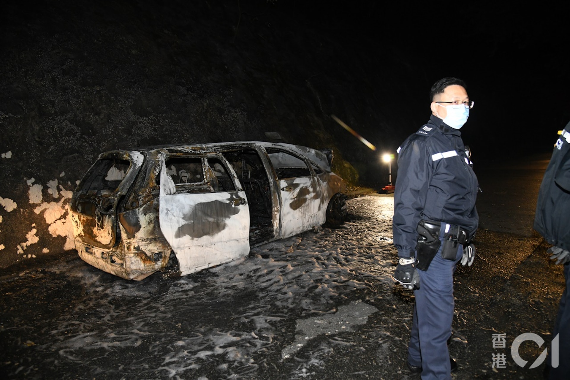 涉事七人車燒成廢鐵,警方發現該車左邊乘客位車門不翼而飛,不排除與昨晚(1日)葵芳邨斬人案有關。) m0 i3 |2 y0 l& a$ G/ B4 Z