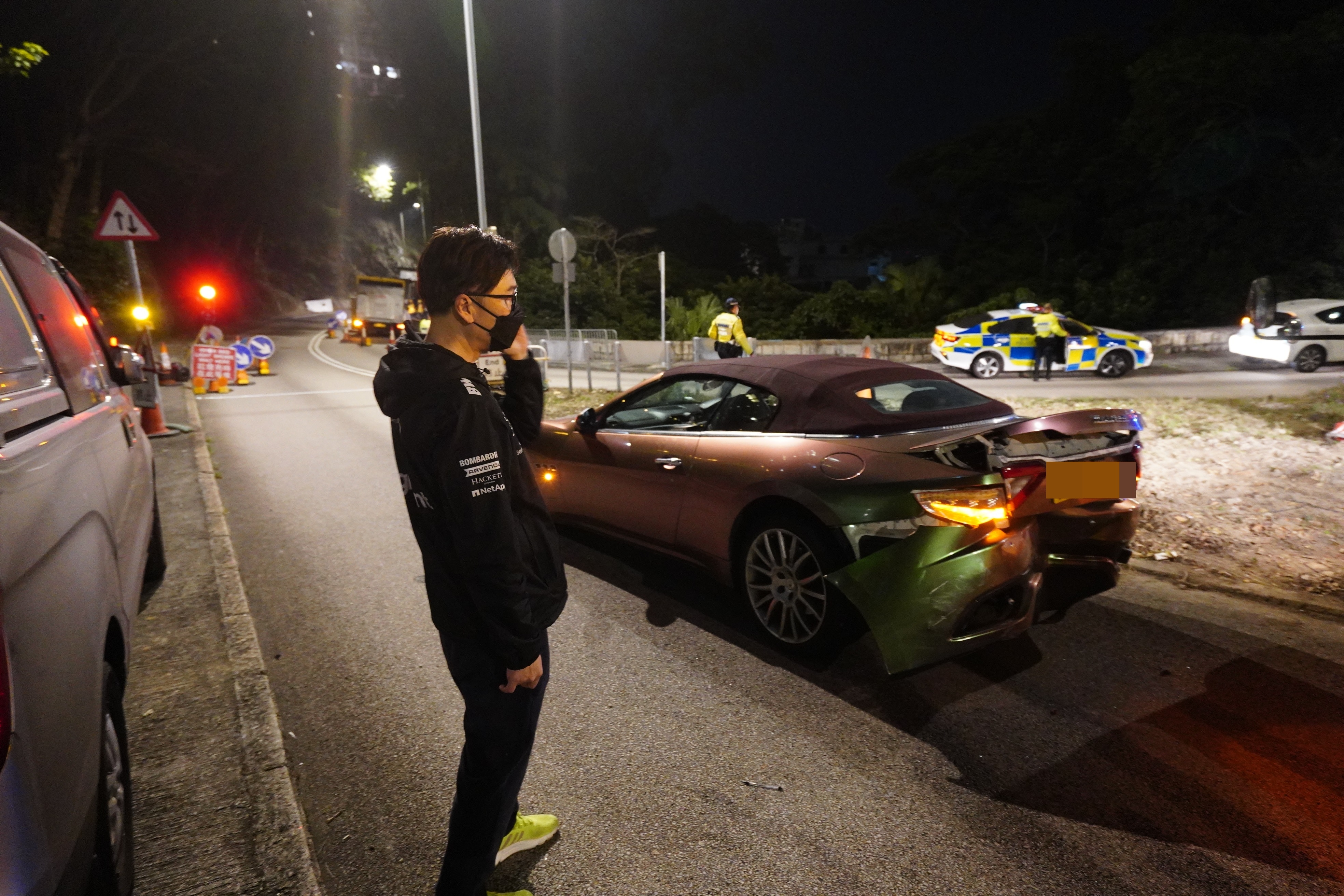 現場所見,有關路段正進行道路維修工程,實行單線雙程行車。據悉,當時一輛瑪莎拉蒂跑車因應紅燈停車,尾隨豐田私家車在落斜時疑車速太快,收掣不及從後撞上跑車。