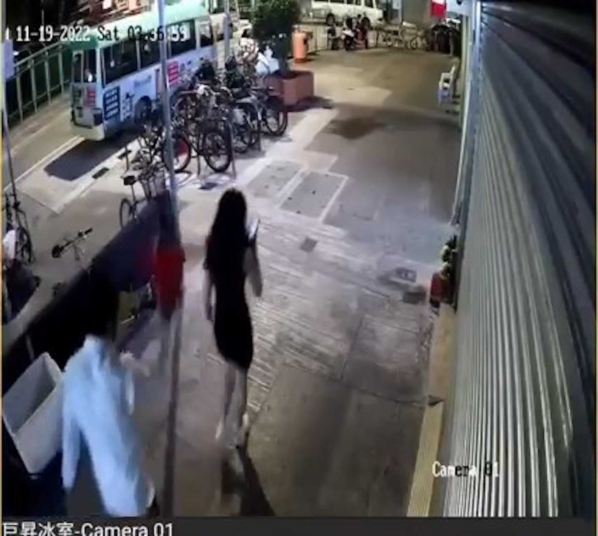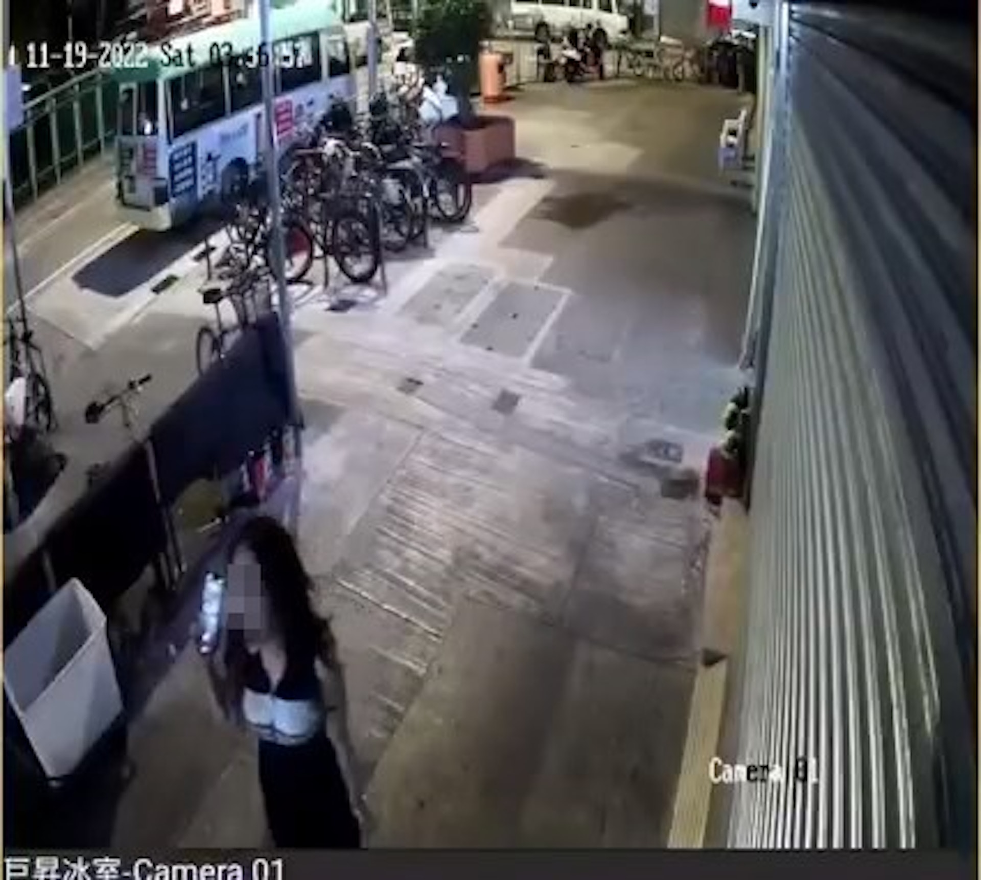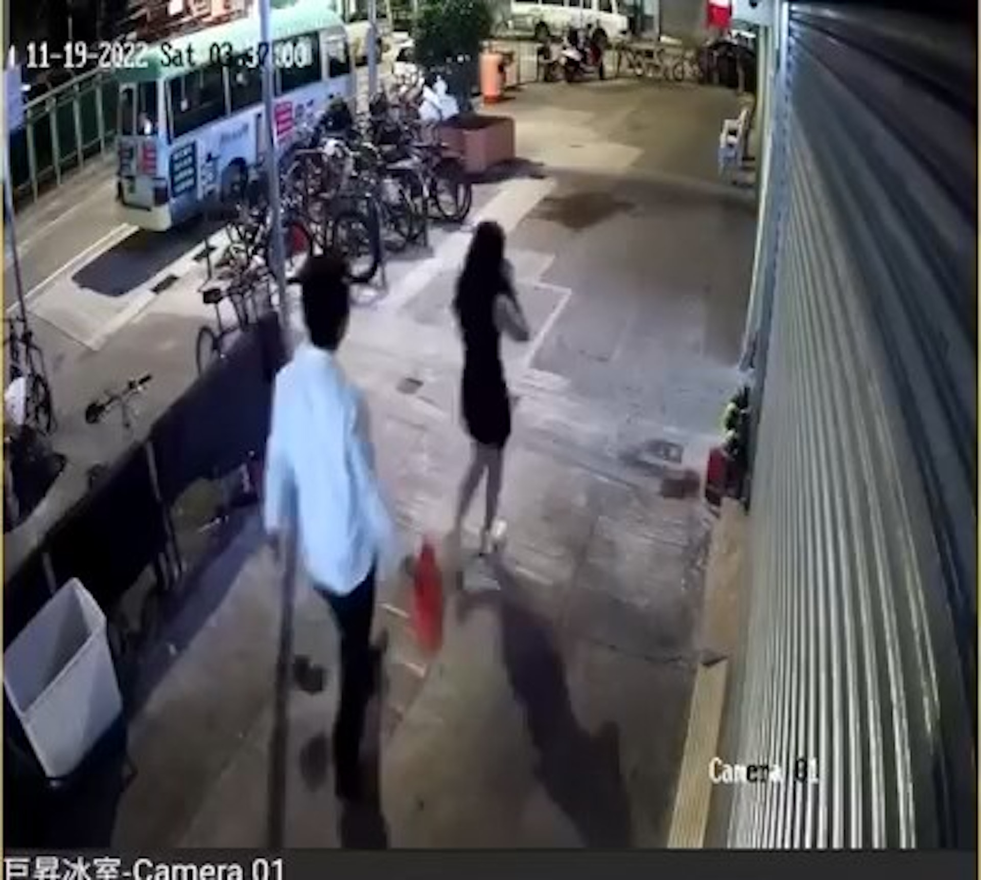 / l. ~6 n P: g) ~3 a# O. e. b2 x公仔箱論壇身穿背心短裙的長髮女子手持電話,怒氣沖沖回頭,狀似向男方喝罵。(網上影片截圖)