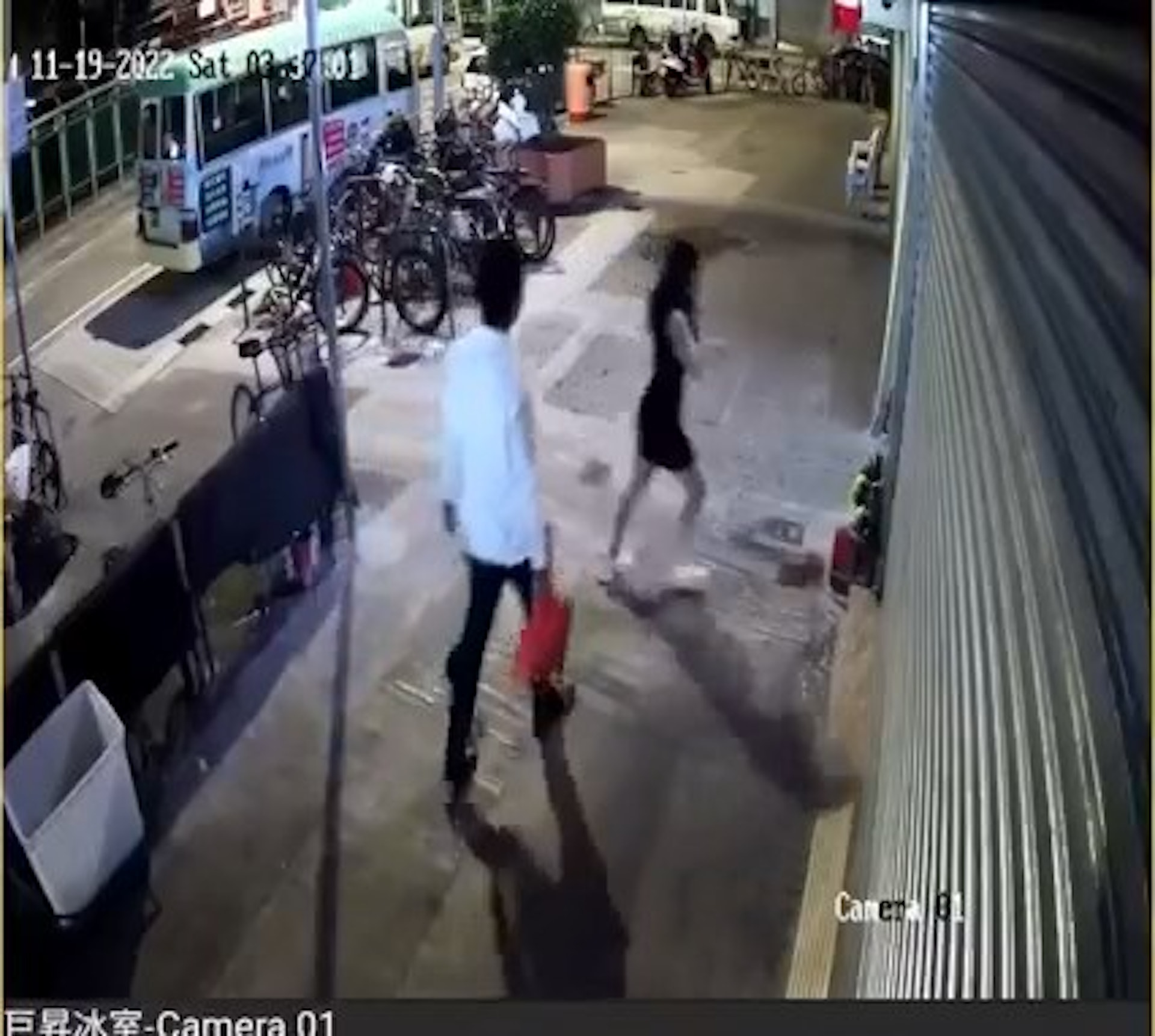 ' J- a1 `9 ]) s' P4 a公仔箱論壇女方途經茶餐廳門外時,突然碎步走近店舖右側,伸出右腳猛踢置於地下的「土地財神」神位。(網上影片截圖)