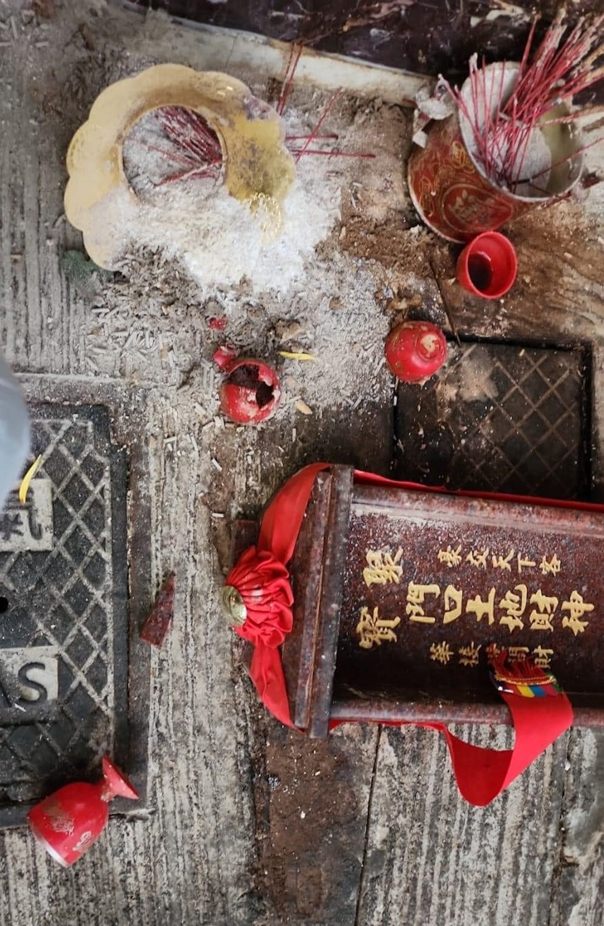 涉事茶餐廳事後在社交專頁上載「慘況」,可見雲石牌位、香爐被踢毀,祭祀用的紅色酒杯四散一地,供奉的菊花亦跌於地上。涉事茶餐廳事後在社交專頁上載「慘況」,可見雲石牌位、香爐被踢毀,祭祀用的紅色酒杯四散一地,供奉的菊花亦跌於地上。