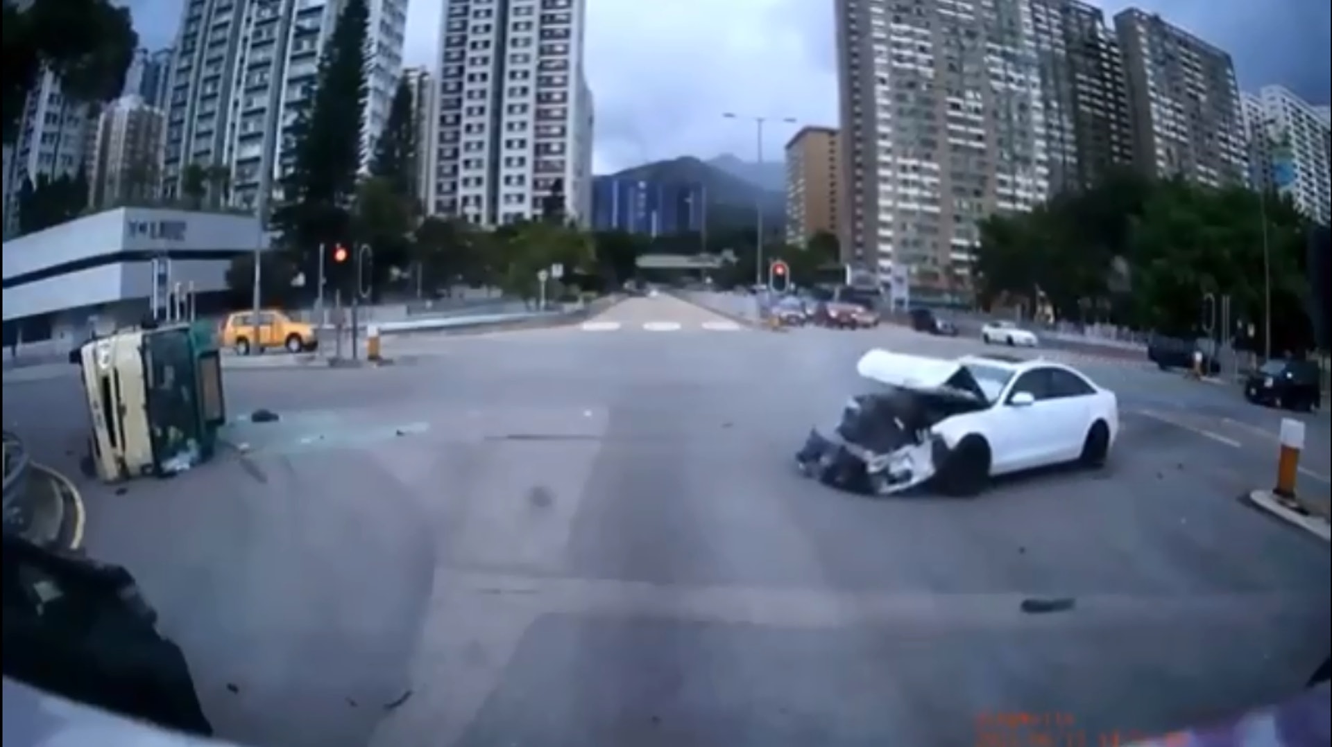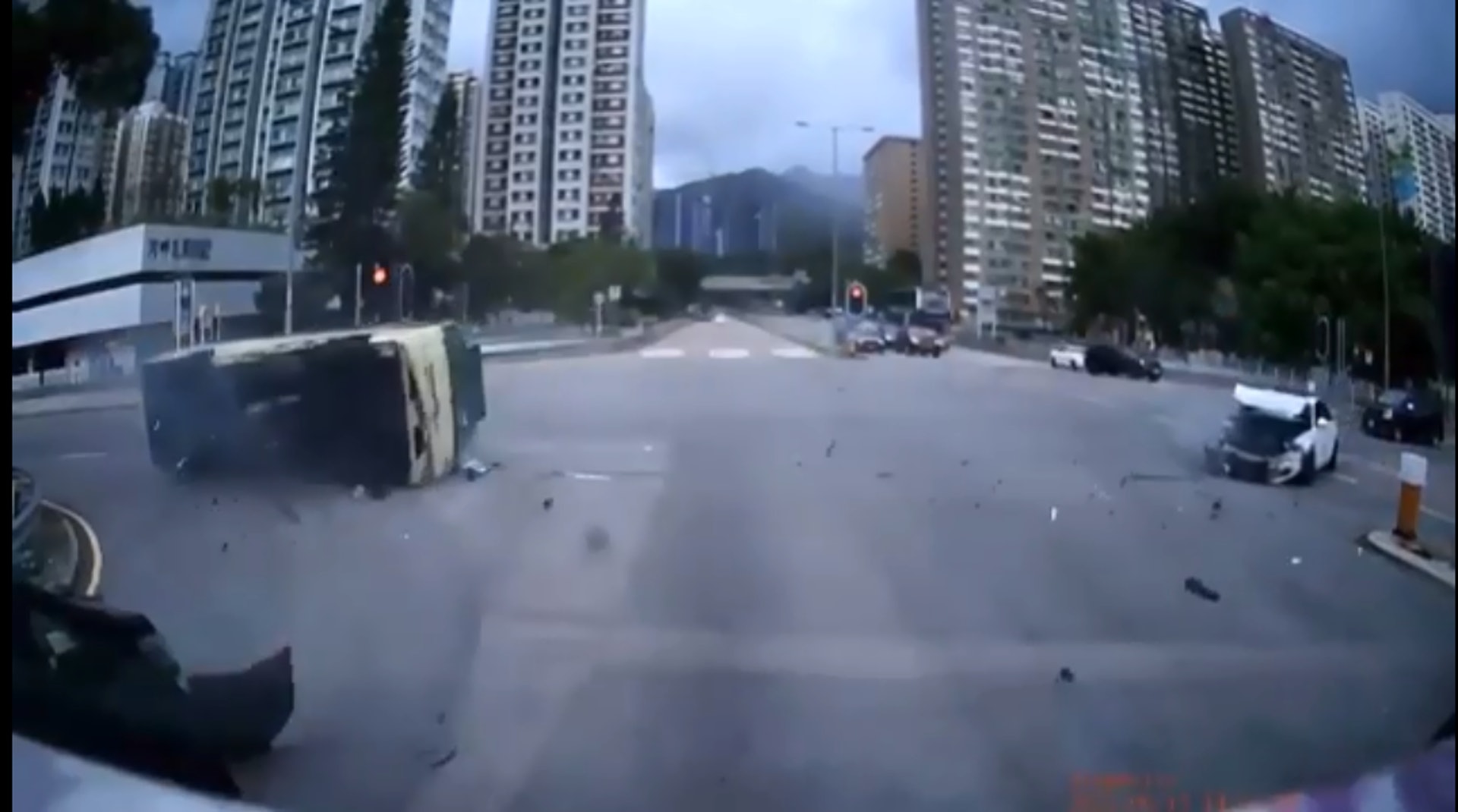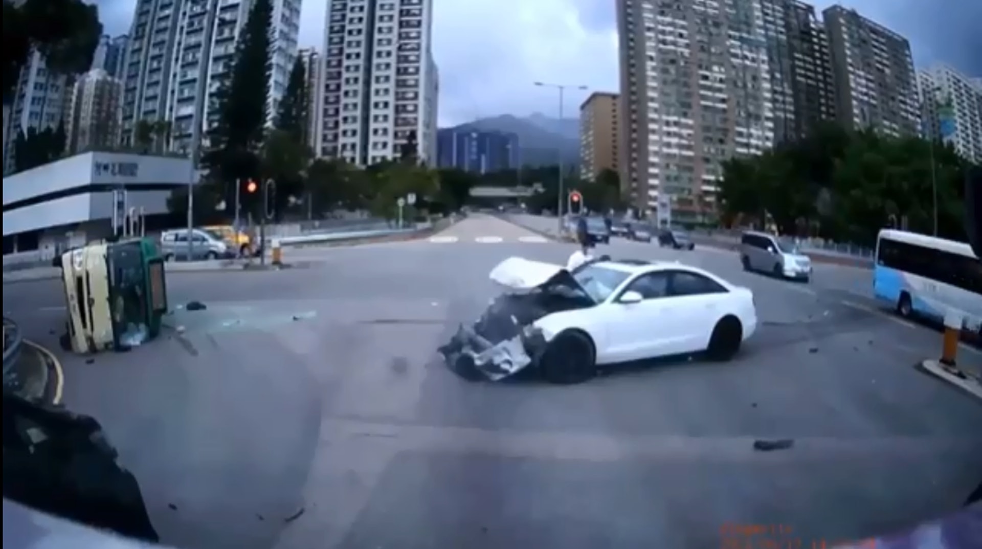 3 }# W3 q2 e' `os.tvboxnow.com今日(13日)下午2時54分,一輛私家車與一輛綠色專線小巴在沙田大涌橋路相撞,綠色專線小巴翻側,導致一死七人受傷。(網上片段截圖)5 v P2 v$ S0 p4 ]$ C ]