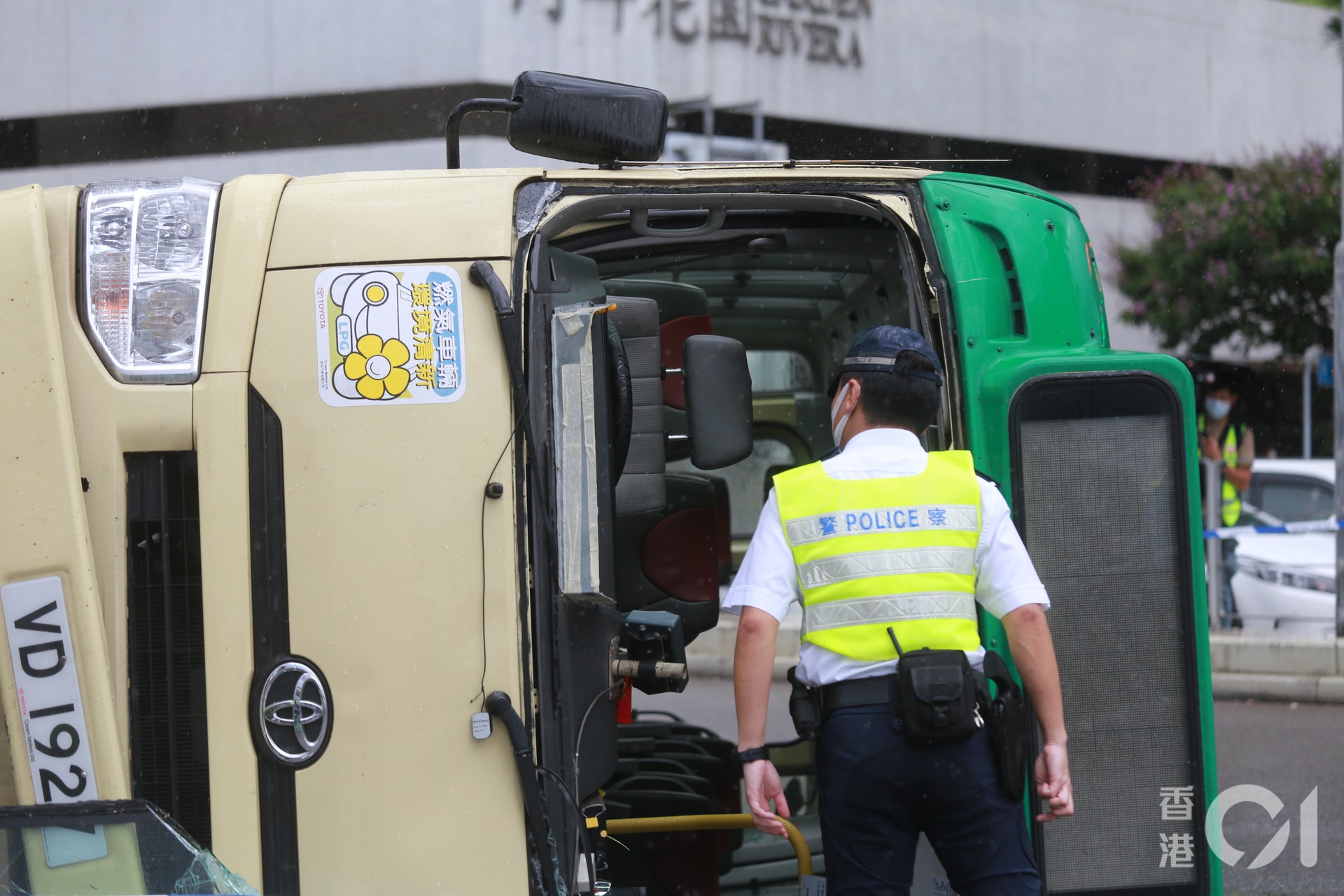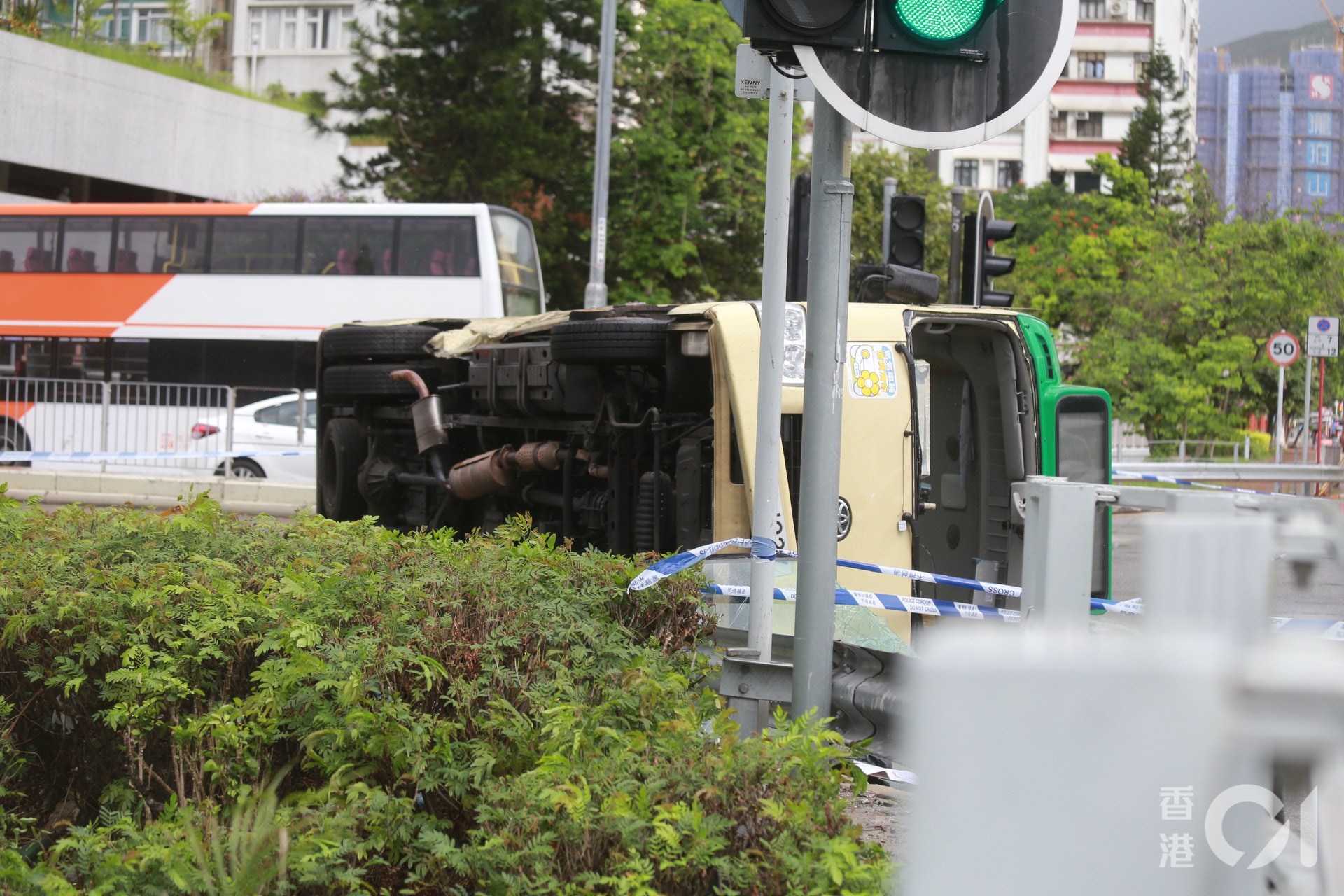 沙田大涌橋路綠Van被私家車撞翻。(林朗天攝)tvb now,tvbnow,bttvb+ Z; ~' U: k% U8 h# x: g( k