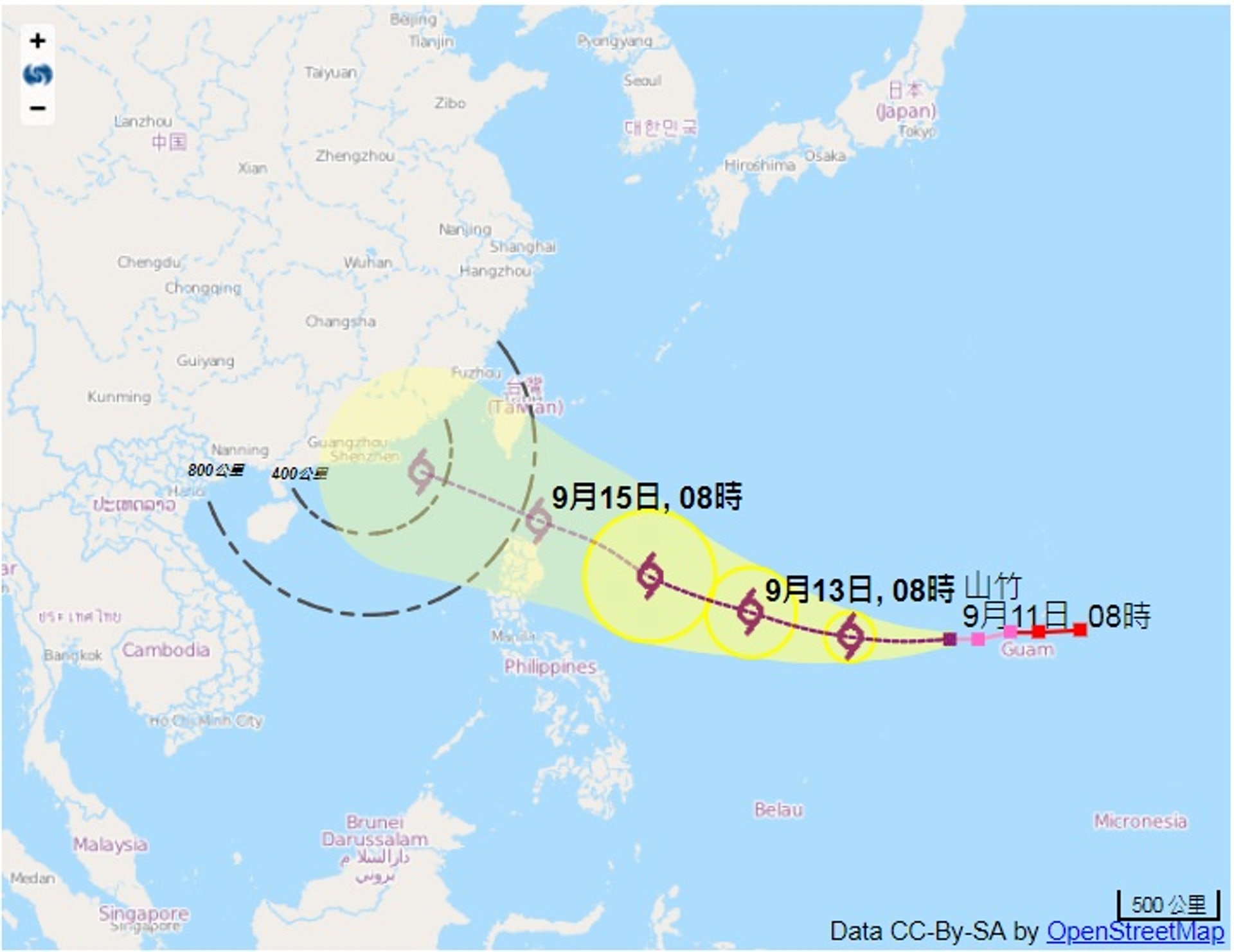 ' A( p3 }+ @& n6 m" r公仔箱論壇「山竹」未來數天動向。(天文台網站截圖)# h: n9 r' O4 e) i
