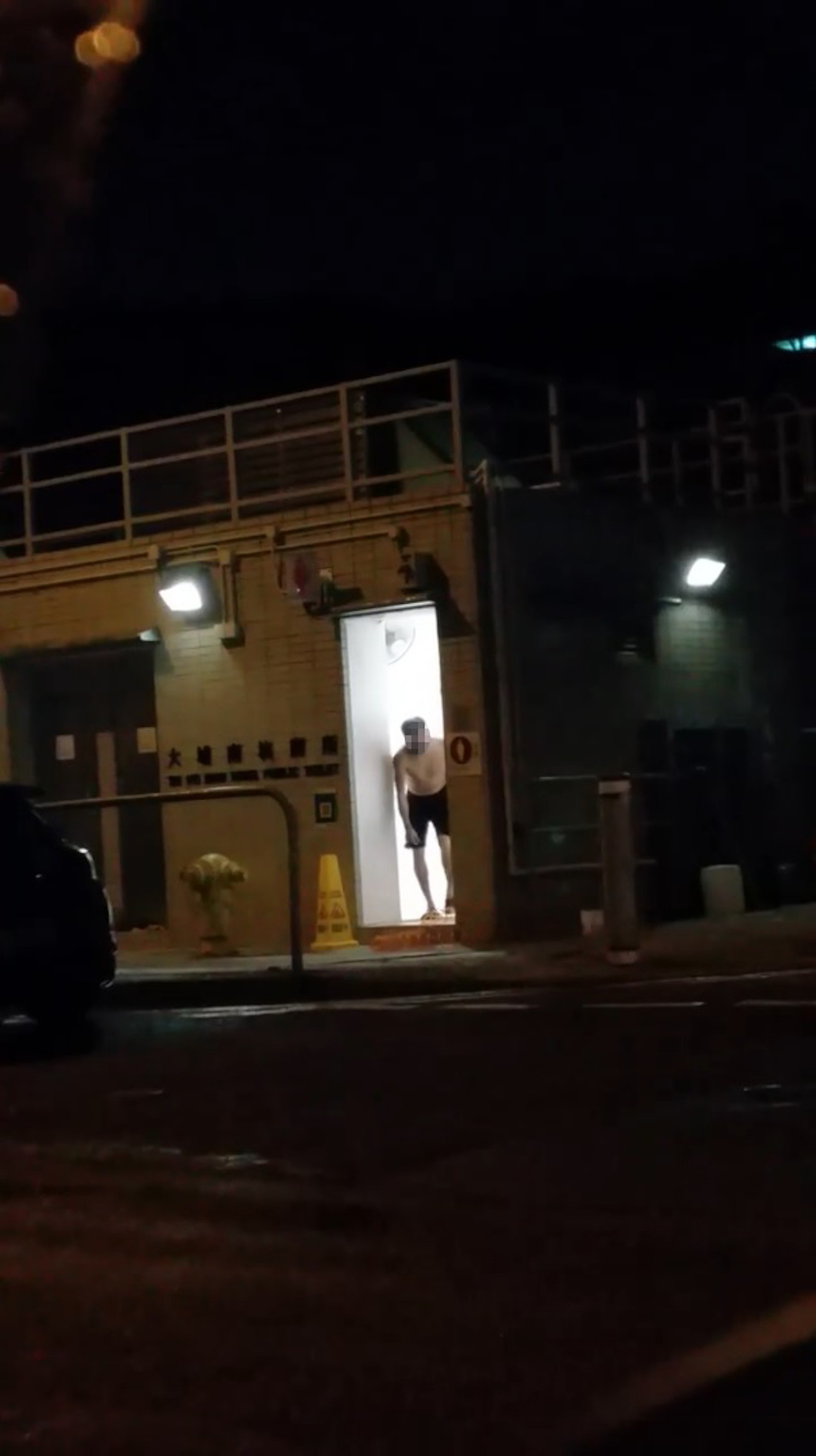 該名港男於facebook群組「祥龍圍邨&清河邨」發文指出,事發時間為昨晚9時36分至10時半,並貼出多段影片及照片,見到1名僅穿短褲、赤裸上身的男子多次進出女廁,旁若無人地拉動水管,然後使用女廁的水洗私家車,不過影片及照片中沒見到有女士進出廁所。