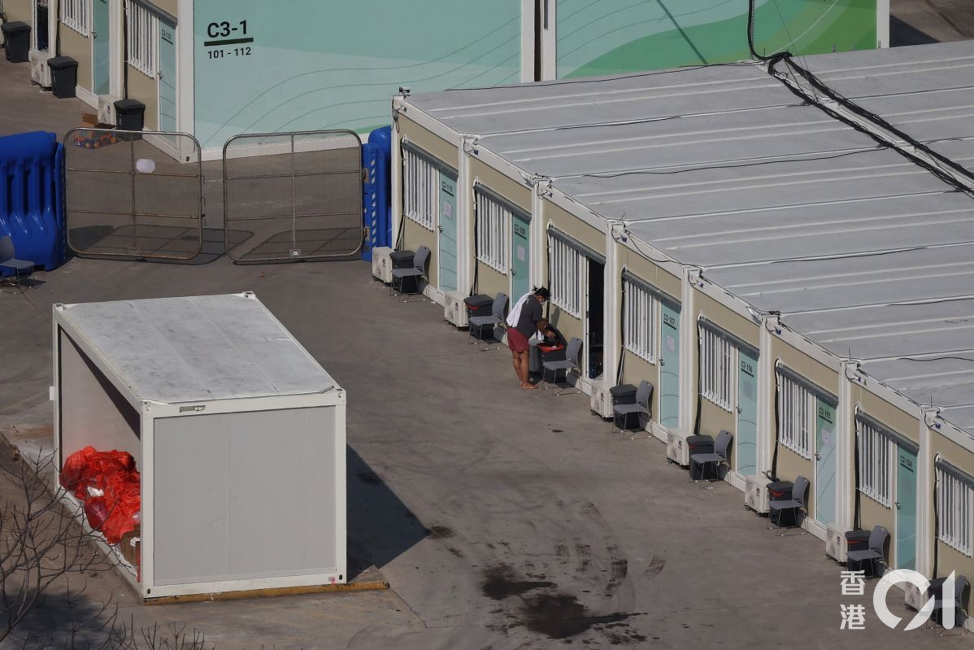 新田方艙醫院已投入使用,3月15日所見,不少單位已有患者居住。(李澤彤攝)