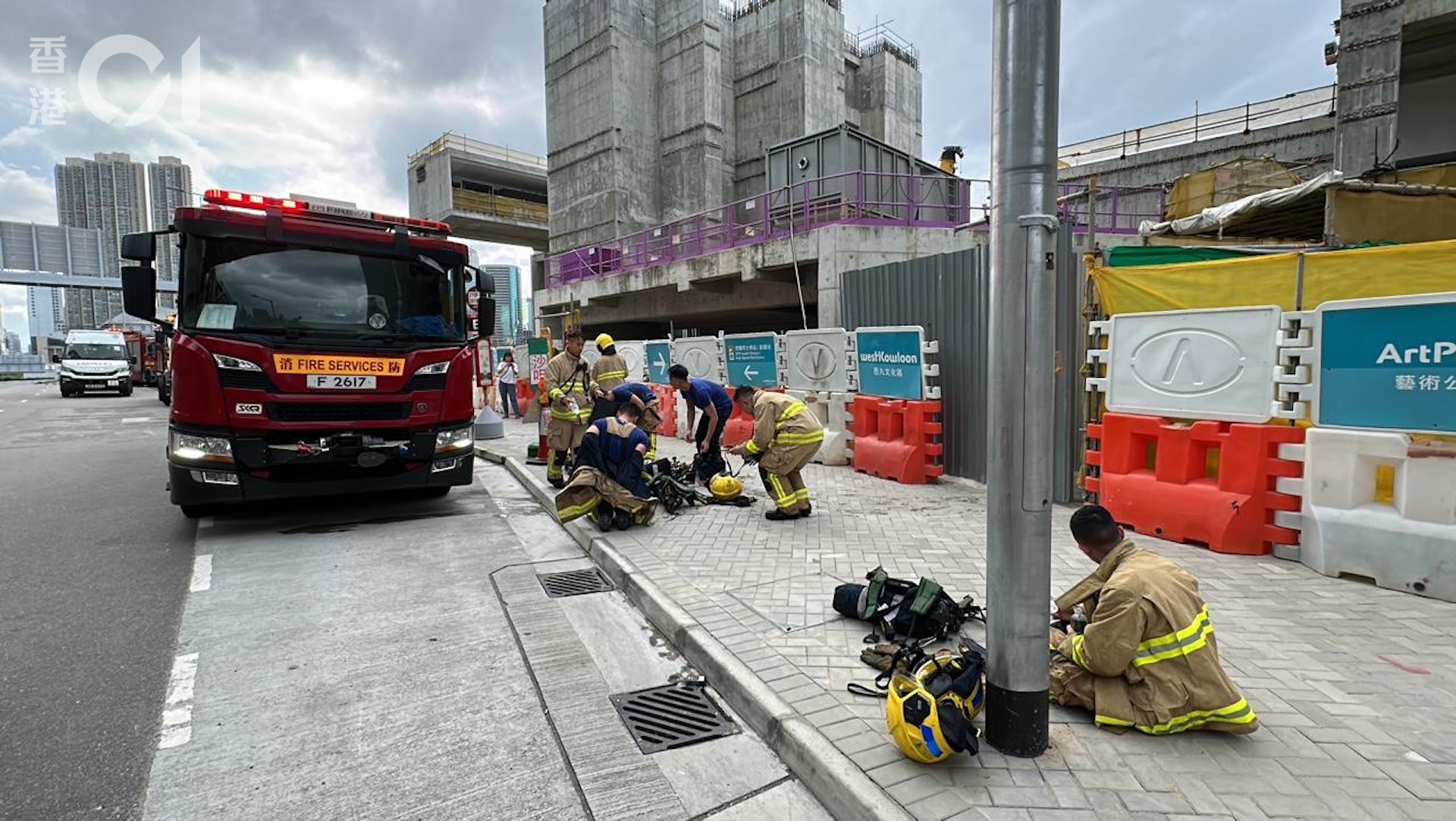 油麻地柯士甸道西1號地盤工地懷疑沼氣洩漏,有2名工人暈倒昏迷。(鄭嘉惠攝)公仔箱論壇* B0 A9 J6 i$ ~) Z/ K3 c3 H; W. P8 P, s