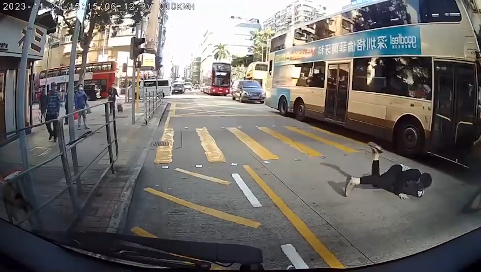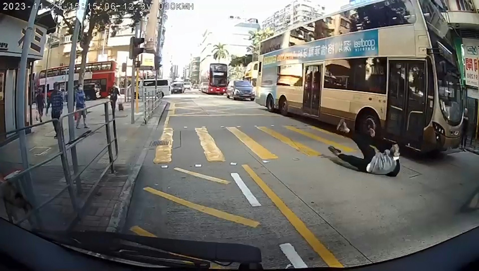 男子遭九巴撞到後頓成「滾地葫蘆」。(馬路的事討論區facebook/網民Ray Lau片段截圖)公仔箱論壇$ t) O; H" ^) V6 n4 Z% q