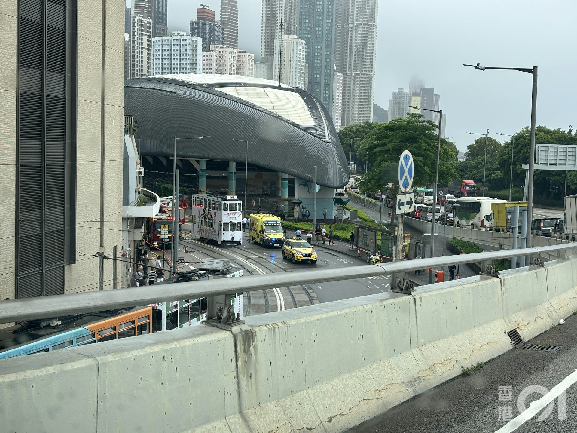 " A* n& c6 e; D/ `os.tvboxnow.com涉事電車停在現場。(黃偉民攝)