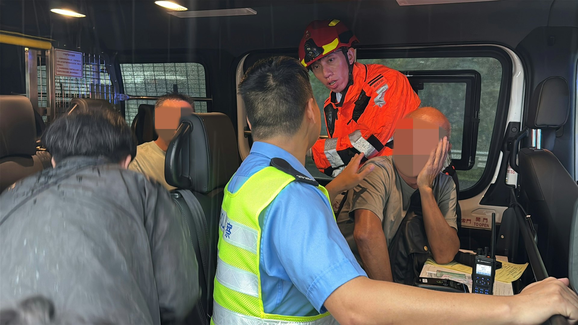 : U7 X9 _5 `7 F% p! V9 t- itvb now,tvbnow,bttvb拖頭司機(右一)涉嫌危險駕駛導致他人死亡被捕;私家車司機(左二)亦在警車上助查。(蔡正邦攝)