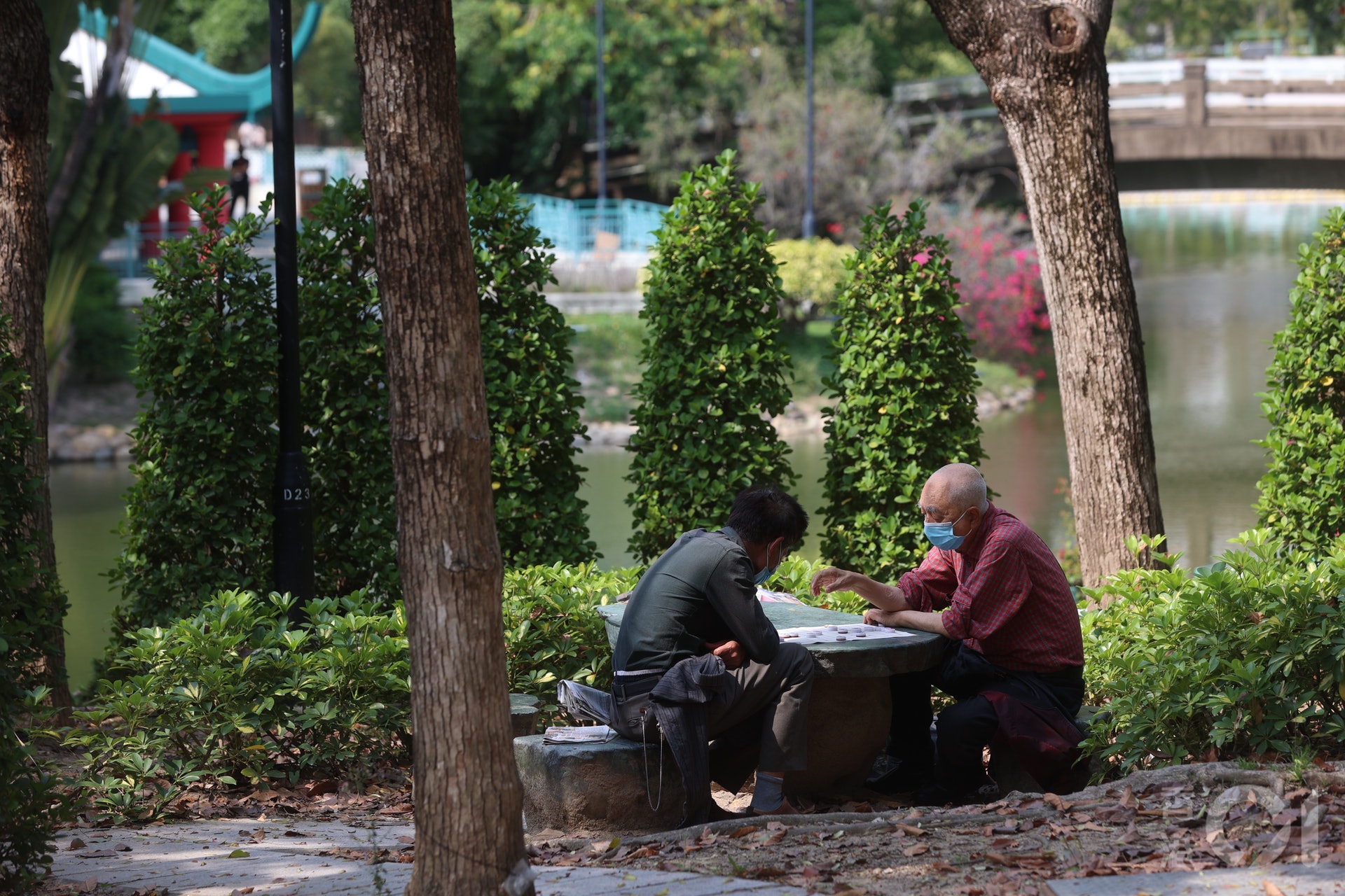 - i- m( A6 n s9 N3 bos.tvboxnow.com第五波疫情持續兩個半月仍嚴峻,限聚令最多2人,3月15日所見,有市民在公園行棋。(鄭子峰攝)