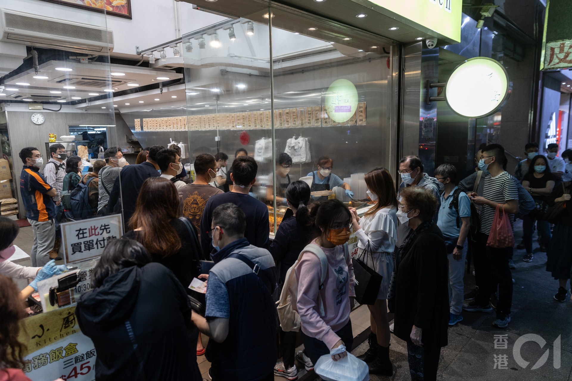 ; ? f6 x0 x9 [( J/ A! C7 ftvb now,tvbnow,bttvb新冠肺炎第五波疫情嚴重打擊經濟,不少人停工或失業,兩餸飯專門店疫市大賣,3月16日晚其中一間門庭如市,迎來「賤物鬥窮人」時代。(廖雁雄攝)