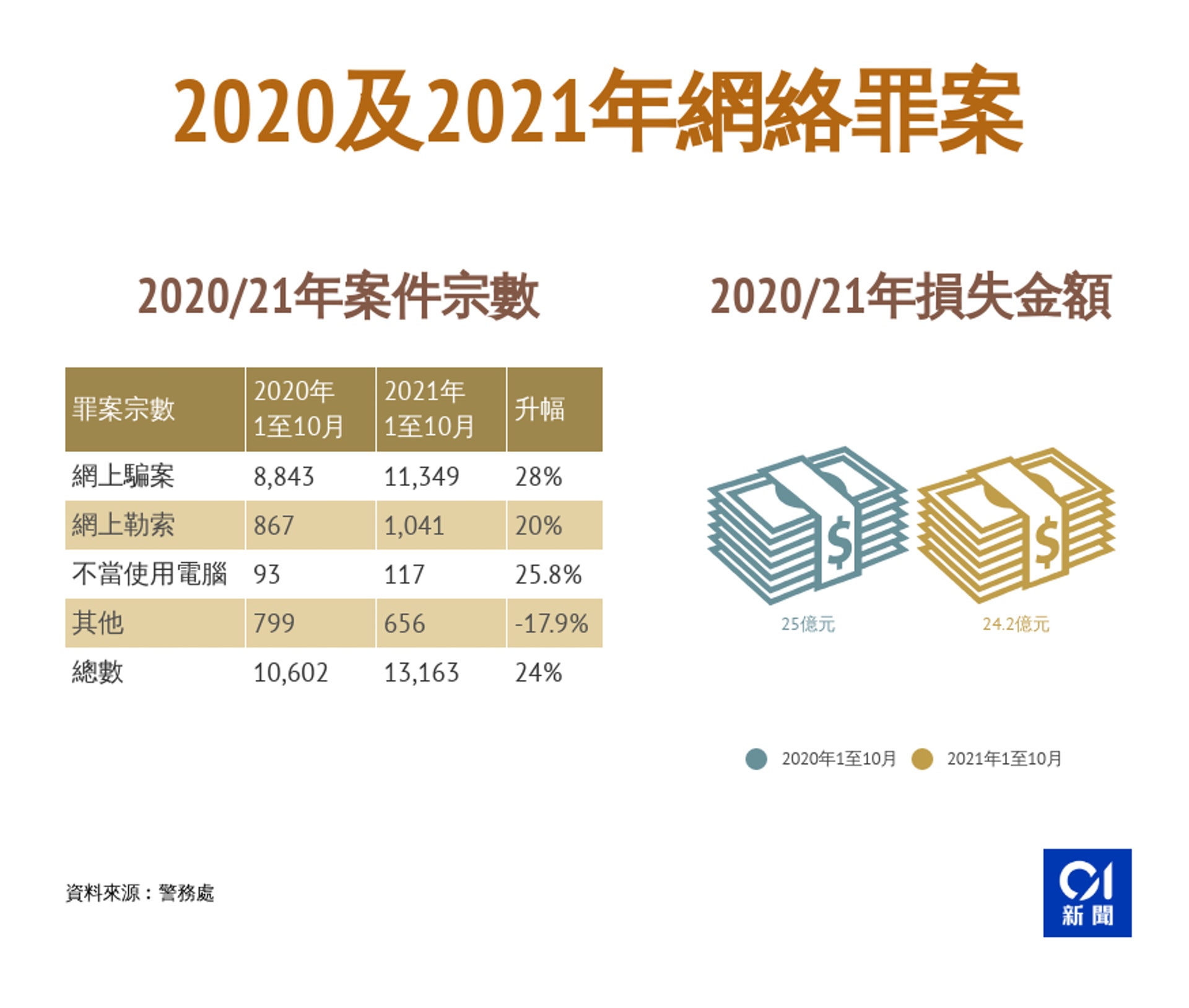 疫情下不少企業推行在家工作,市民經常透過互聯網購物,科技罪案數字相應上升,今年首10個警方接獲13,163宗科技罪案,較去年同期上升逾兩成,損失金額高達24.2億元。) `7 [ e8 B0 B8 ]% u# P